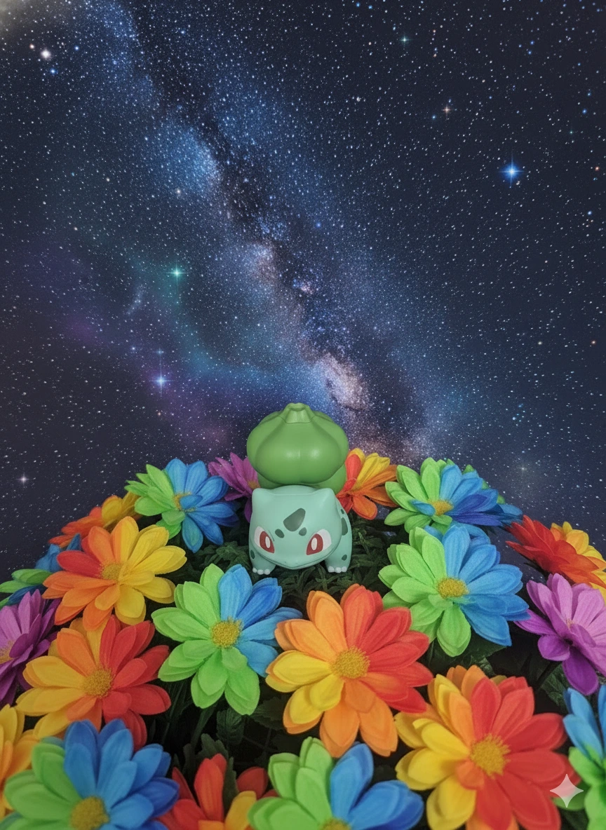 사진이 두 장 잇는데 하나는 내가 이상해씨 프라모델에 AI로 이미지를 삽입한 것.