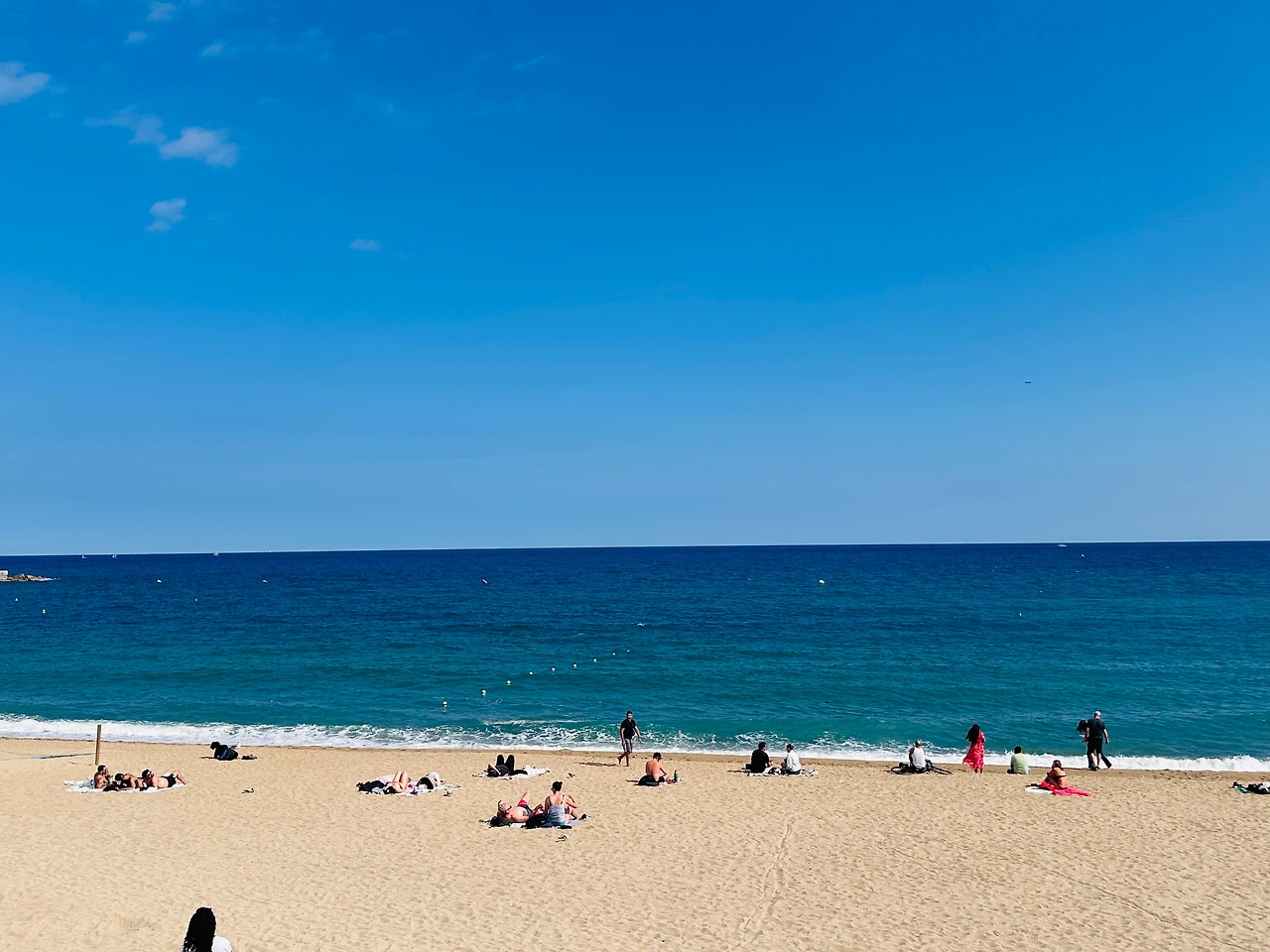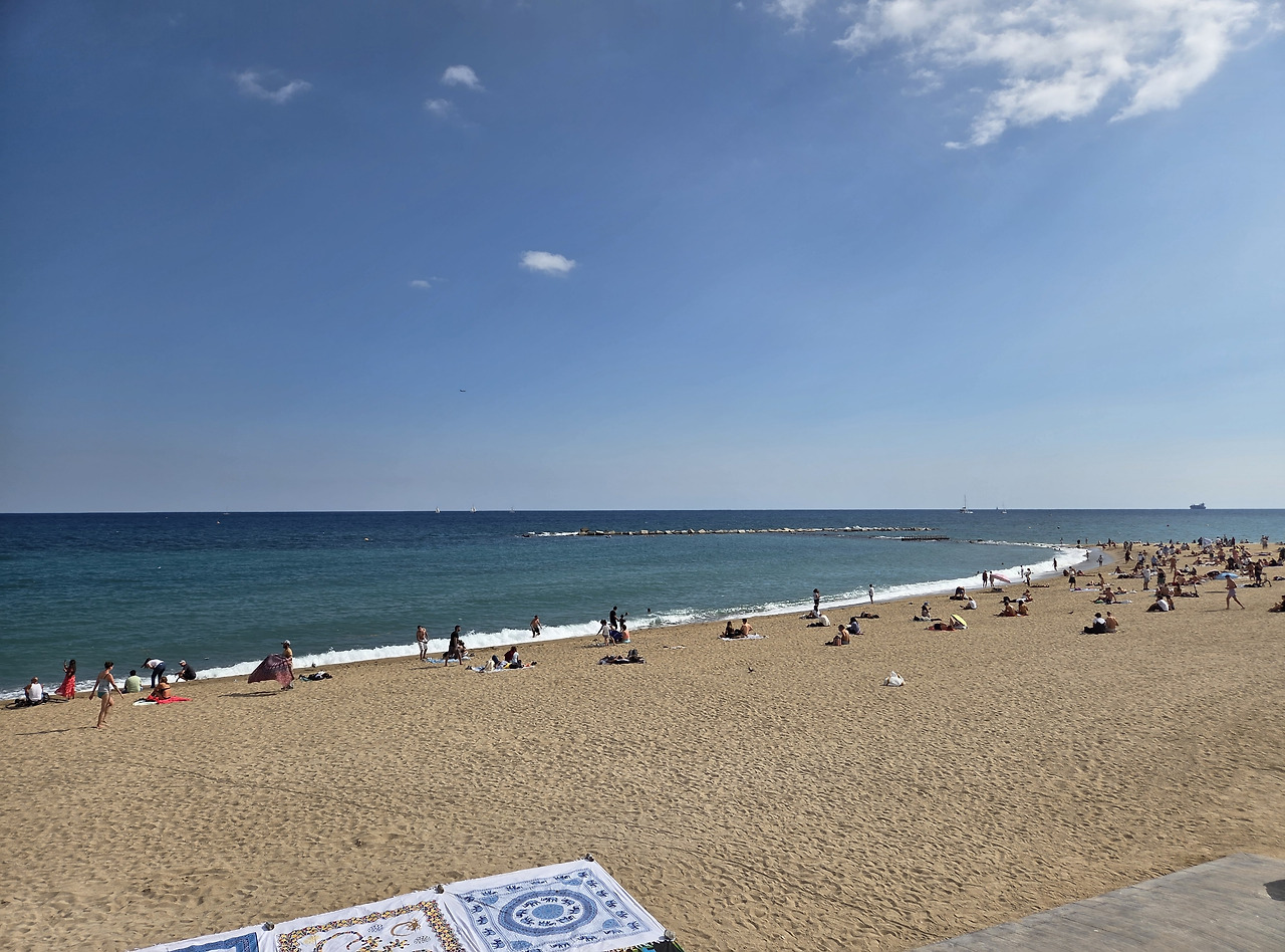 호를 그리며 펼쳐진 모래사장과 푸른빛은 바다가 우편엽서의 그림처럼 아름다웠다. 바닷가 특유의 짠내와 끈적한 바람 때문에 해변을 그다지 좋아하지 않지만, 이상하게도 바르셀로나의 바다 내음은 상쾌하고 바람도 보송보송했다. 해변 한쪽에서는 알록달록 화려한 무늬의 피크닉 매트도 팔고 있었다.