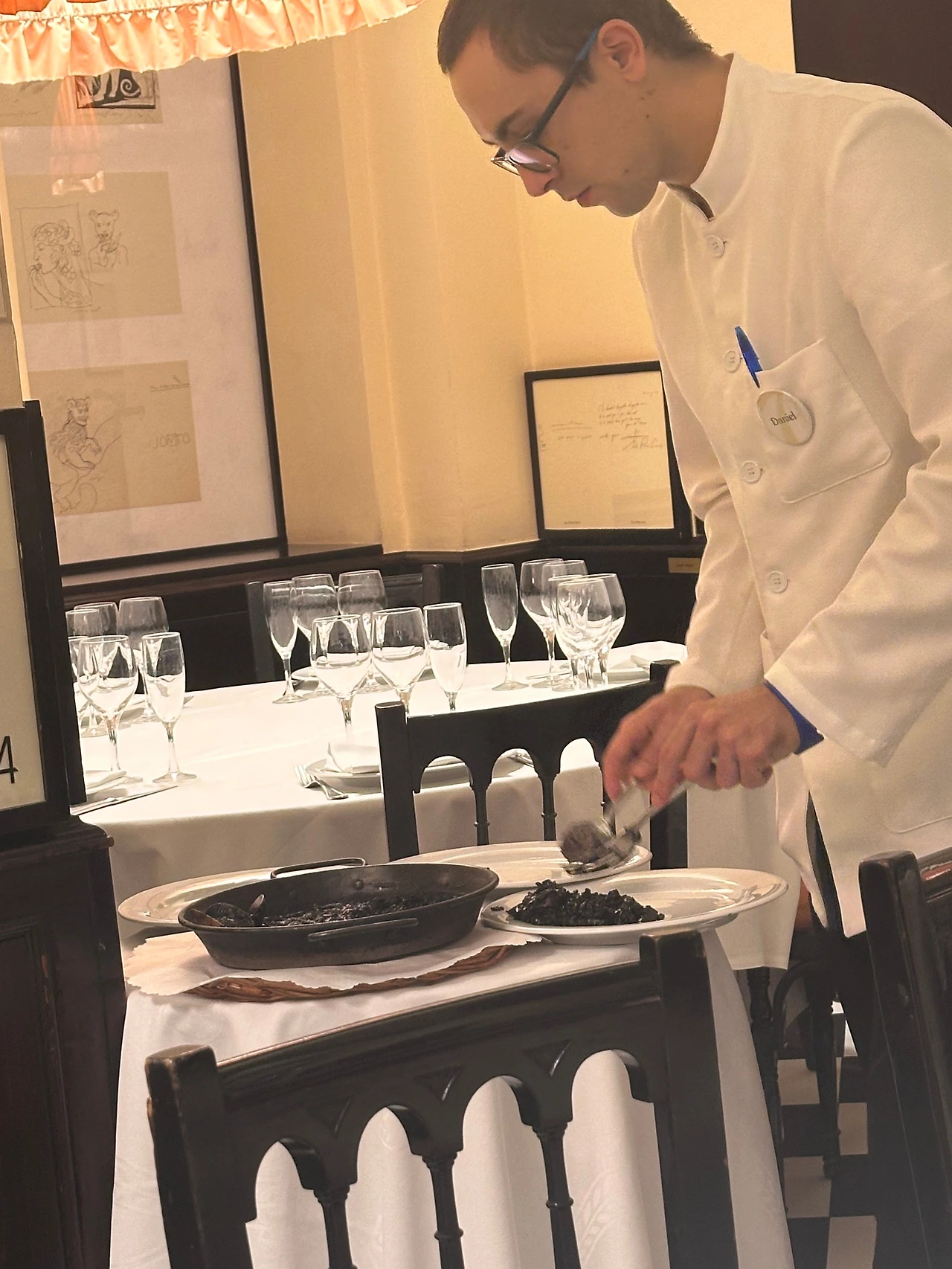 1836년에 문을 연 식당이라니, 거의 200년의 역사와 전통을 자랑하는 곳이다. 건물 외부도 고풍스럽고 멋있었지만, 내부로 들어가니 고급스러운 인테리어와 조명이 시선을 끈다. 복장을 갖춰 입은 직원분들은 벌써부터 식당을 가득 메운 손님들을 응대하느라 분주해 보인다. 자리를 안내받고 천천히 둘러보니 벽면 가득 식당을 거쳐간 예술가들 그림과 유명인들의 사인이 한가득이다. 운이 좋으면 유명인이 앉았던 자리에 앉게 되는 특별한 경험을 할 수도 있다.