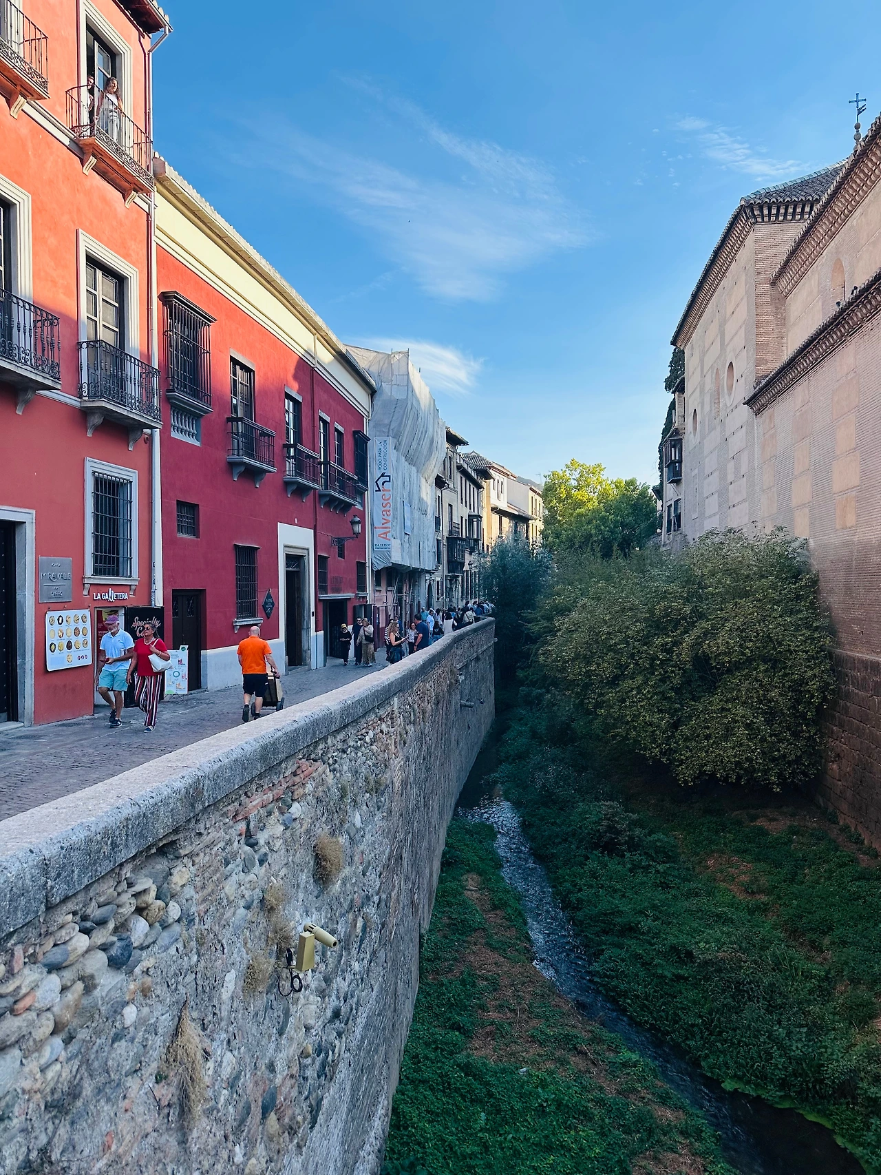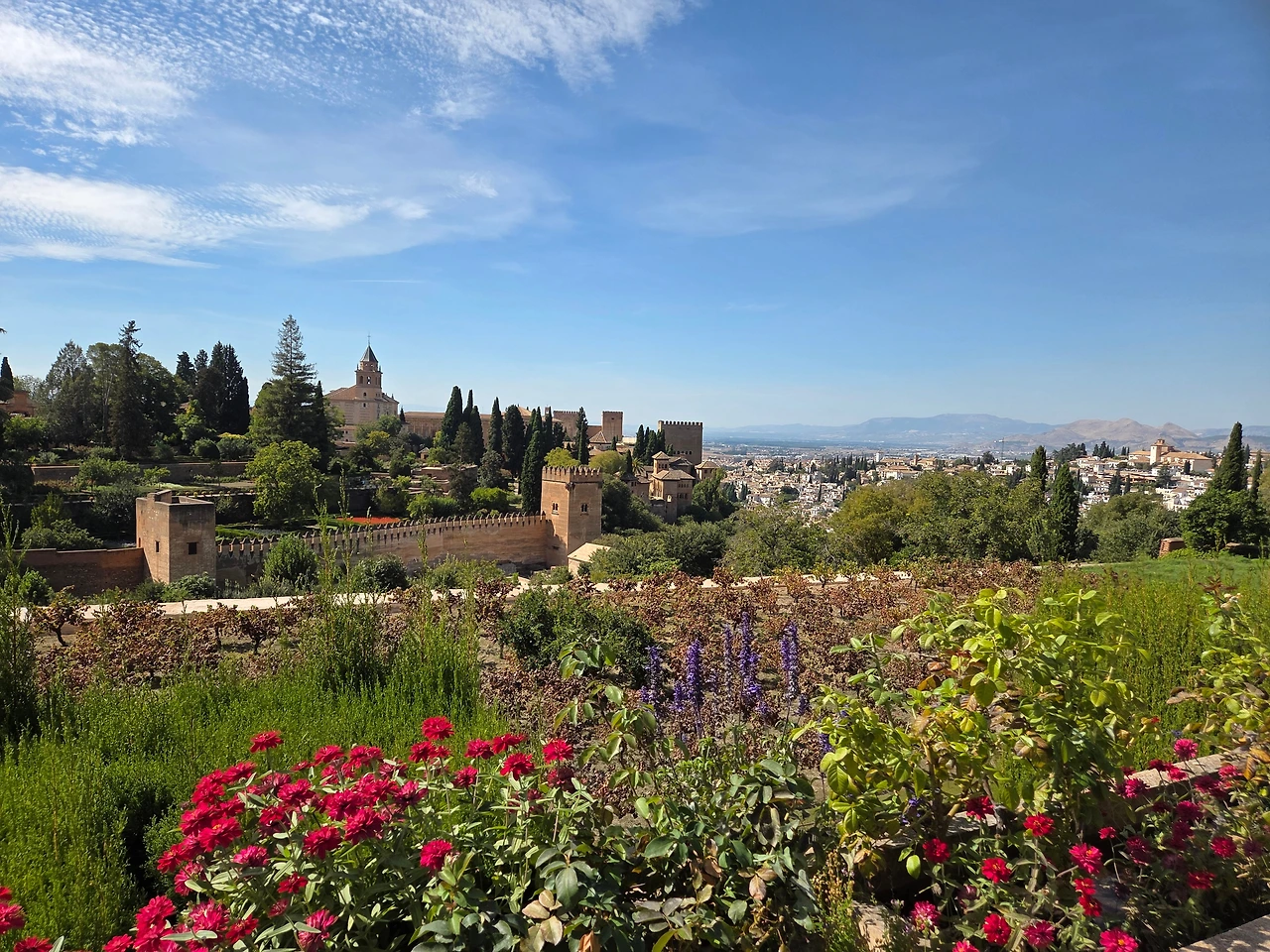골목 사이사이를 걷다 보면 복잡할 것 같지만 신기하게도 길은 이어지고, 골목마다 비슷비슷하지만 또 다른 아기자기함이 있었다. 우리 셋다 걷는 걸 좋아하지만 알람브라 궁전에서 많이 걸어야 한다길래 체력도 비축할 겸 식당에서 점심을 든든히 먹으며 잠시 쉬었다. 뽈뽀 요리와 타파스, 그리고 빠질 수 없는 띤또 데 베르노와 레몬 맥주로 배를 채운 뒤, 버스를 타고 알람브라 궁전으로 이동했다.