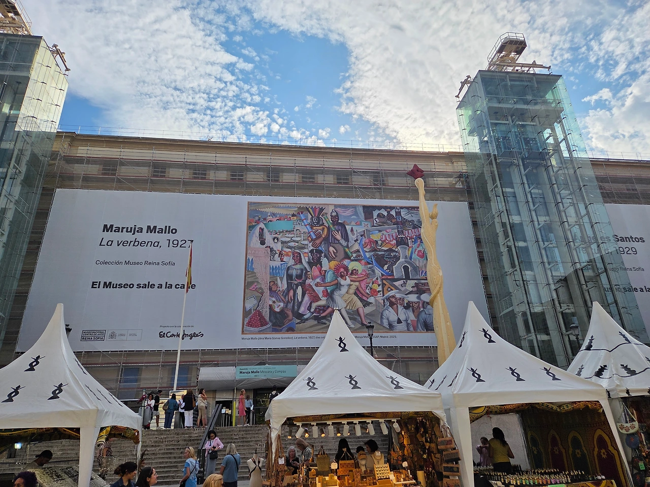 다행히 금방 자리가 났다. 우리는 오징어 샌드위치와 맥주를 주문했다. 바게트 빵 사이에 오징어 튀김이 들어있는 겉으로 보기에는 특별할 것 없는 모습이라 별 기대 없이 먹어 보았는데, 부드럽고 짭조름한 오징어와 고소하고 담백한 바게트의 조화가 일품이었다. 시원한 맥주와 함께 먹으니 더 좋았다. 만족스러운 점심식사를 마치고 레이나 소피아 미술관 앞에서 가이드님과 다시 만났다.