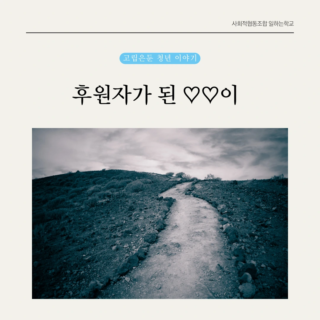 혼자 힘만으로 극복하기 어려운, 위기 속을 살아가는 청(소)년들을 곁에서 거들며 삽니다. (정기후원신청) bit.ly/일학후원 (후원계좌)농협 355 0025 8391 73