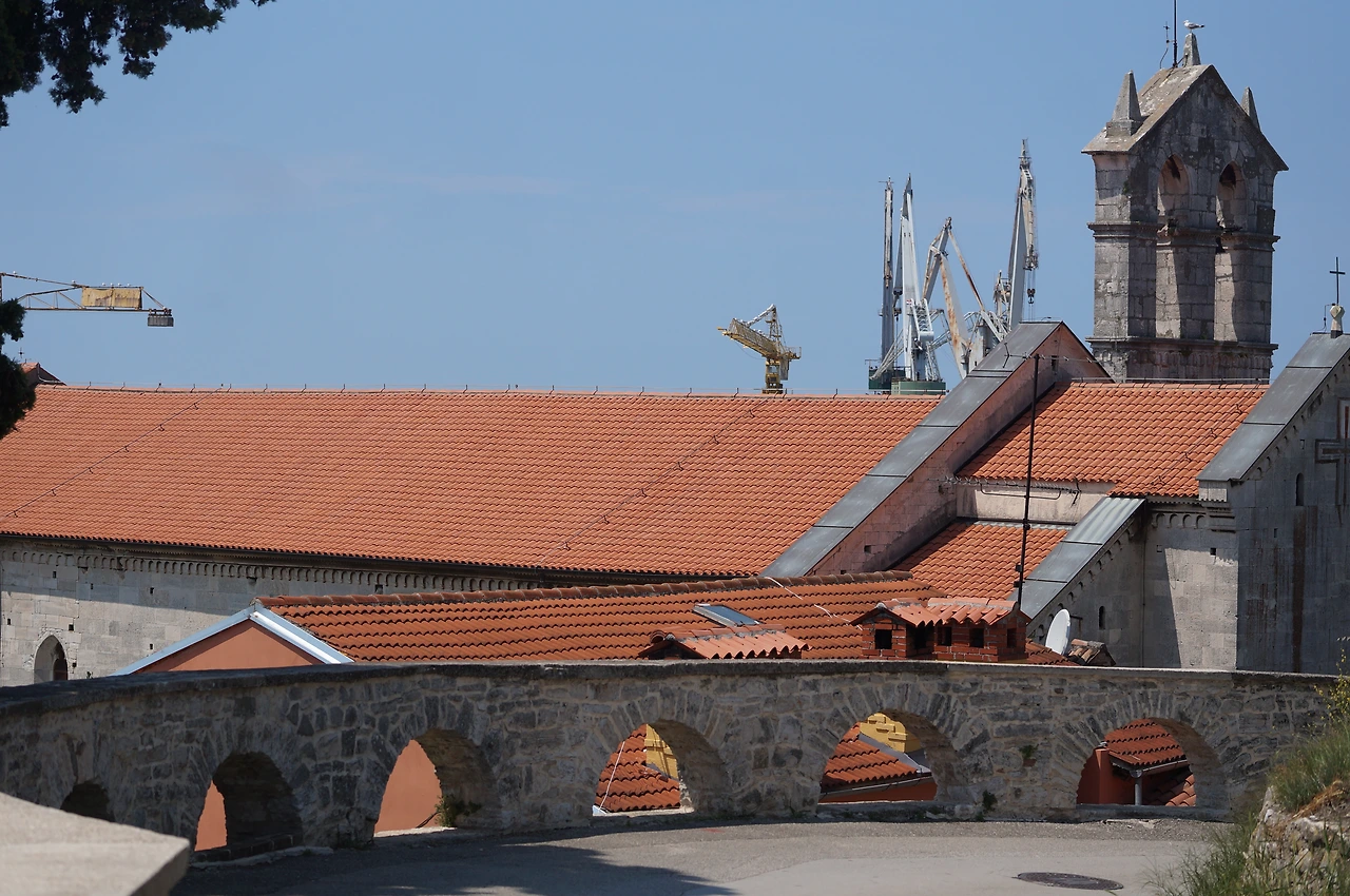 그리고 동쪽엔 14세기에 건설된 자비의 성모 성당(Crkva Svete Marije od Milosrđa)이 서 있다.