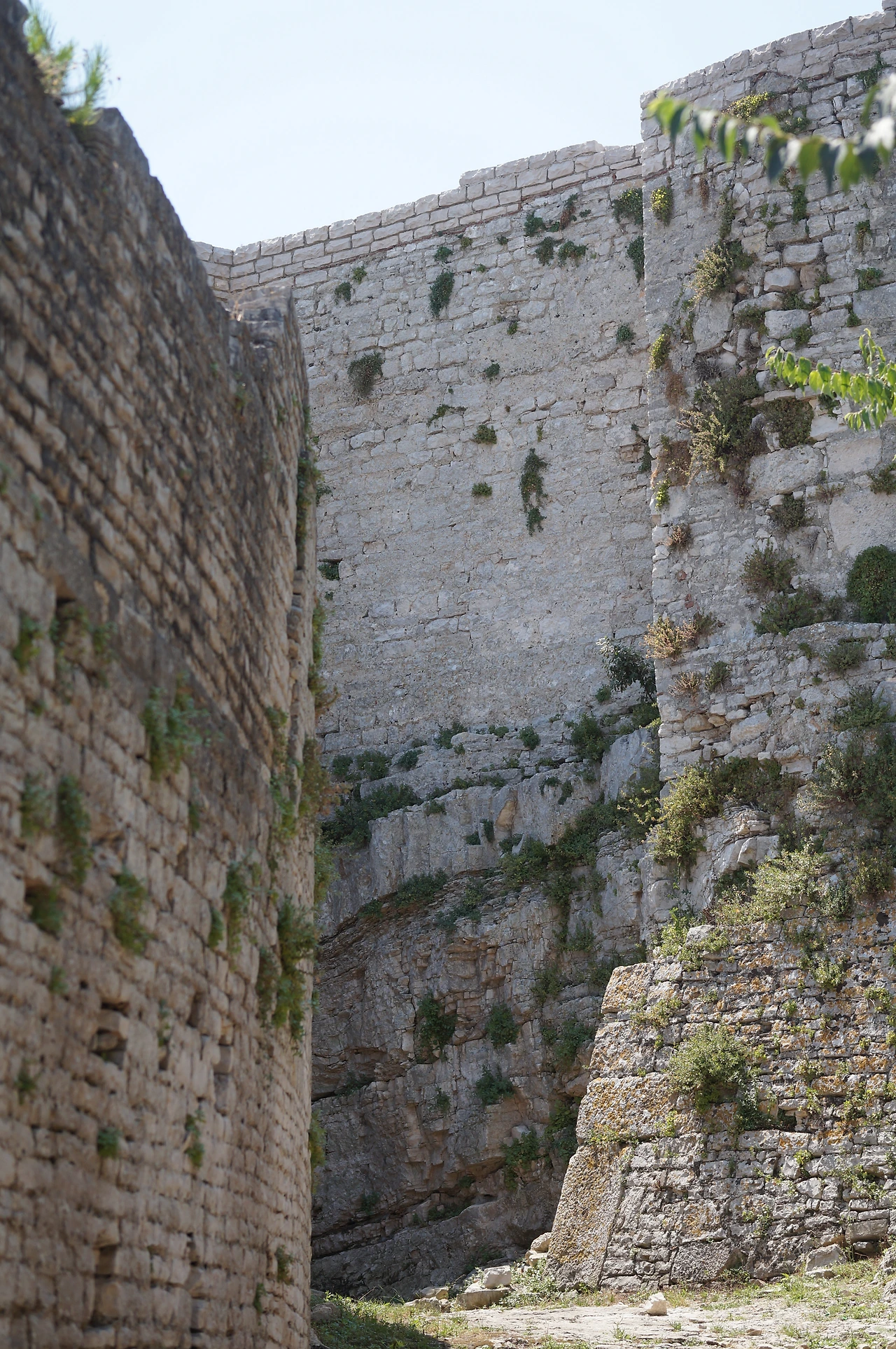 항구 쪽으로 높은 돌담이 길게 이어지고,