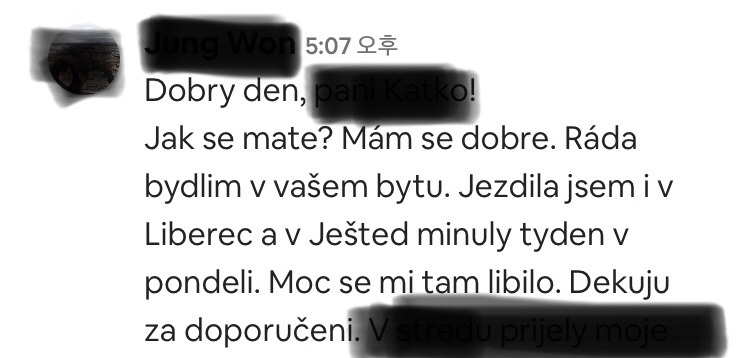 체코인인 에어비앤비 주인장 듣기 좋으라고,
