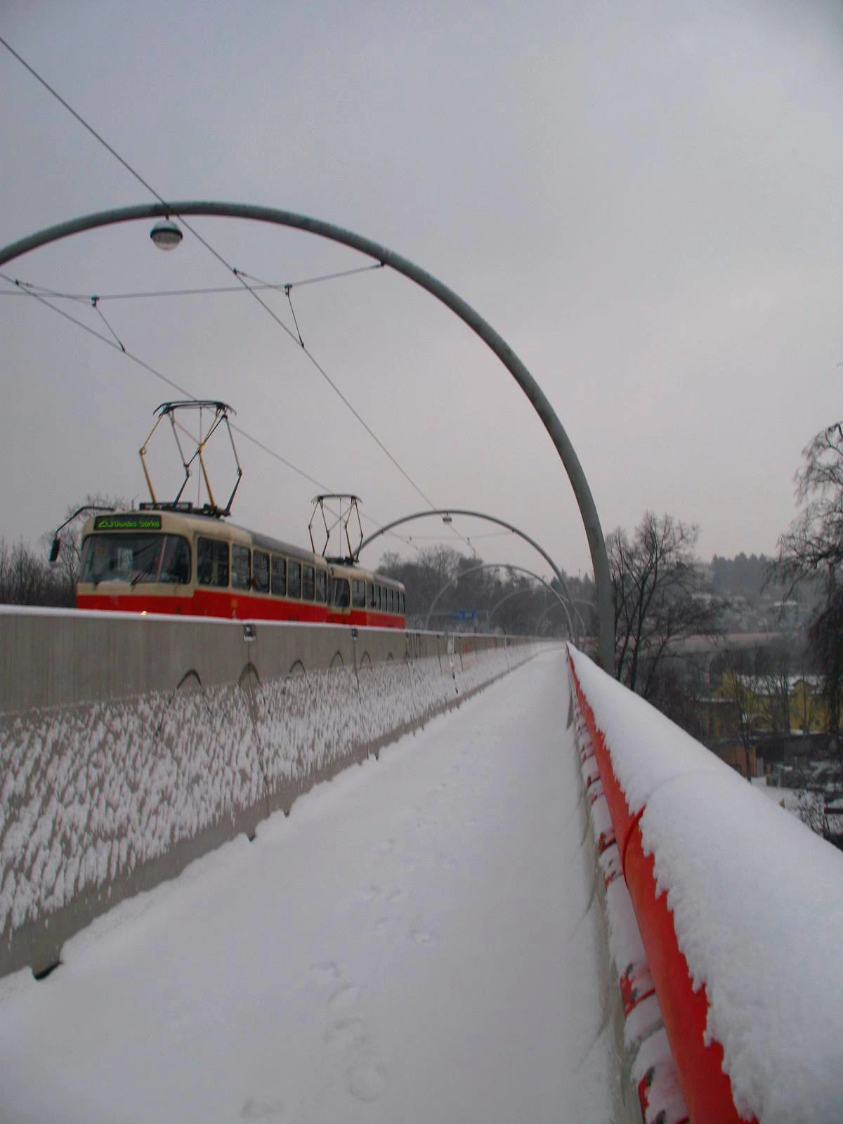 페트르진 전망탑(Petřín Lookout Tower, Petřínská rozhledna)과 시내를 연결한다.