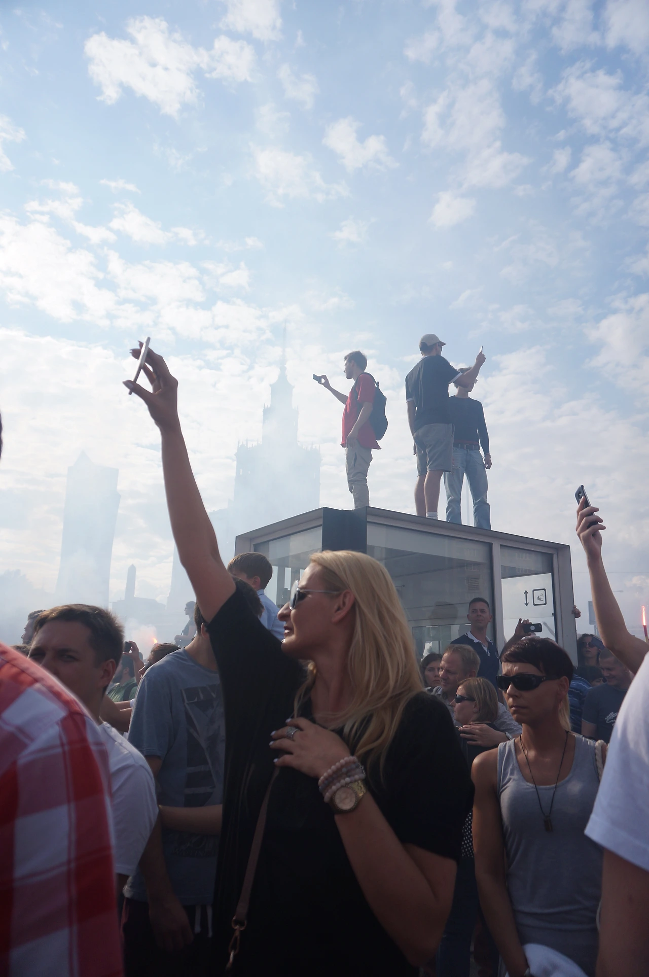 사람들이 함성을 지른다.