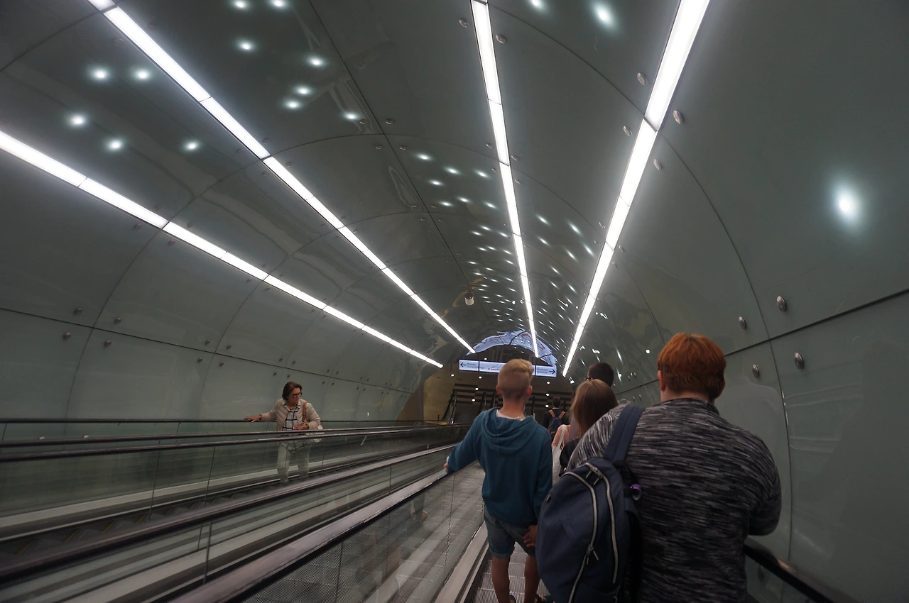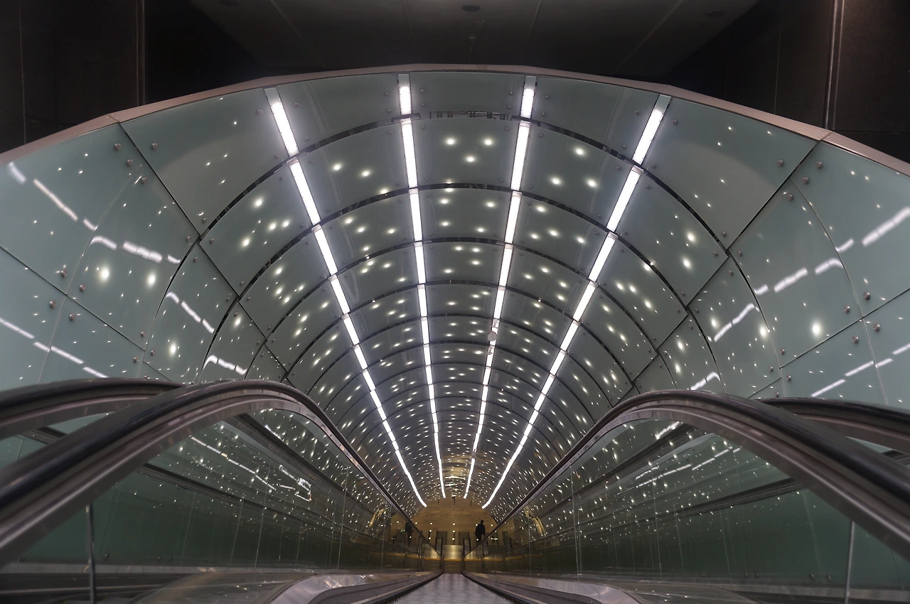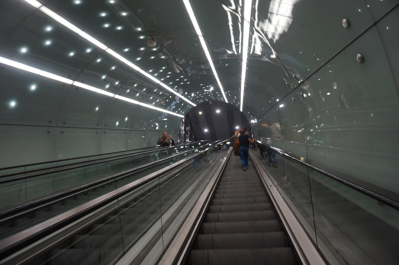 엄청 빠른 에스컬레이터를 타고 한참 내려가서