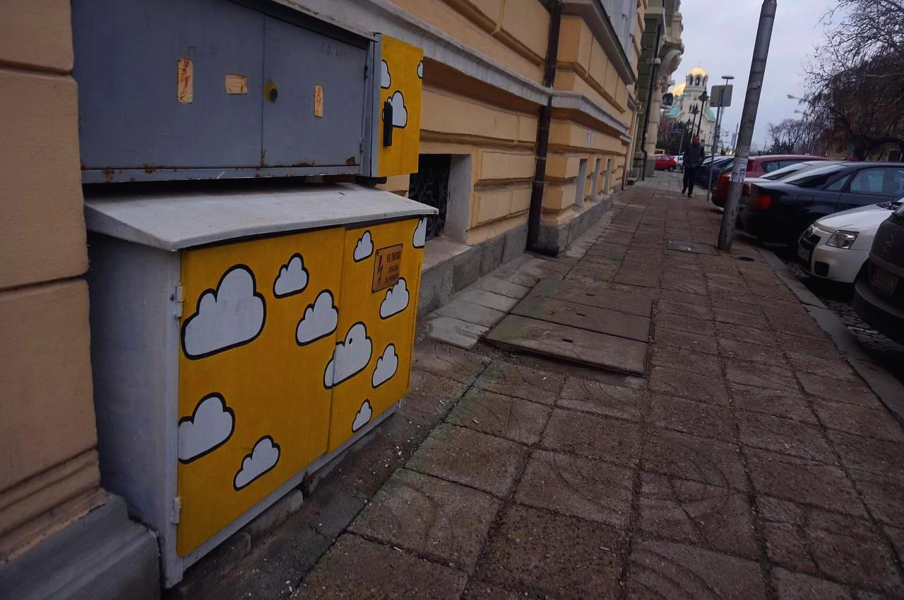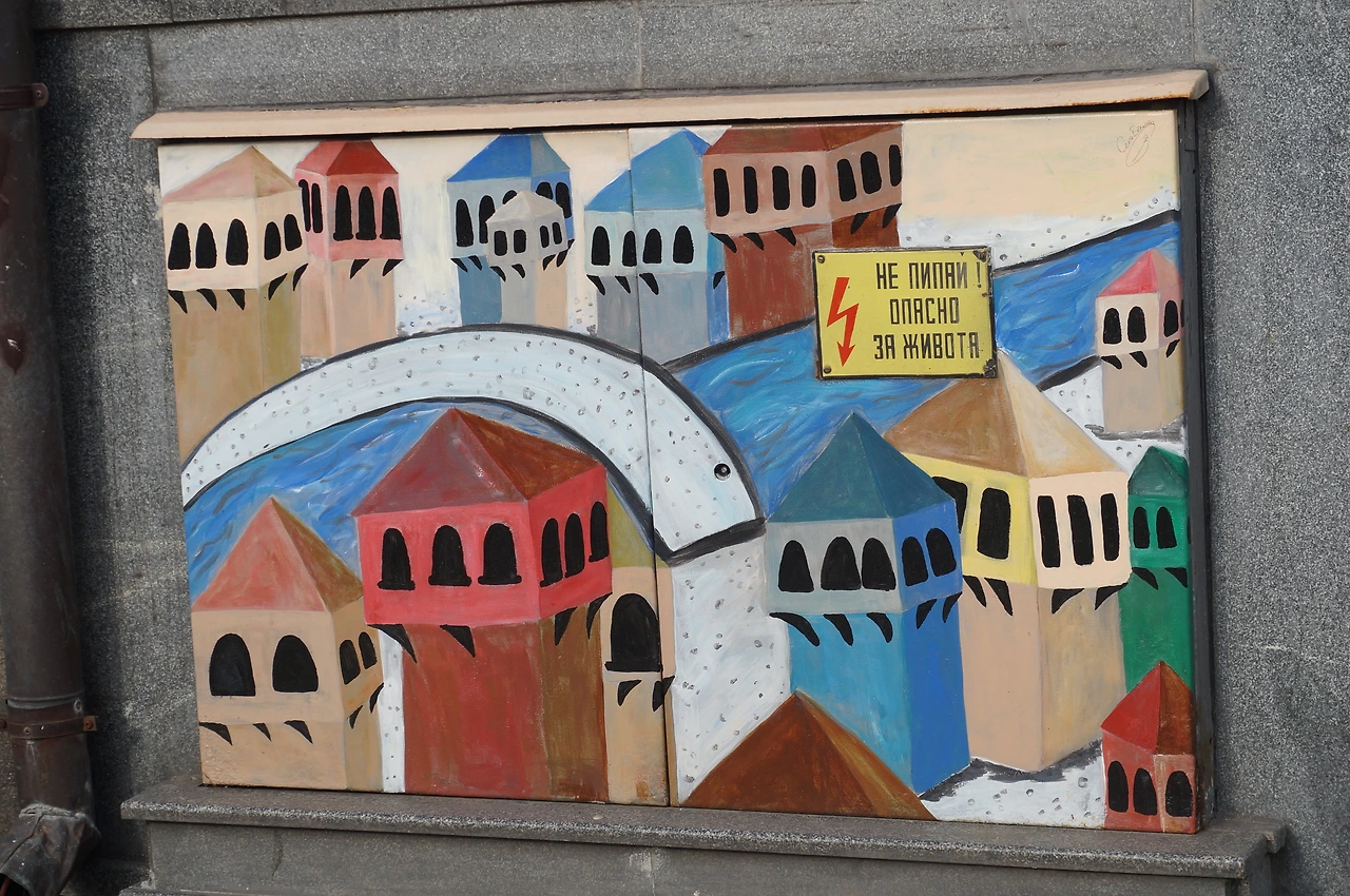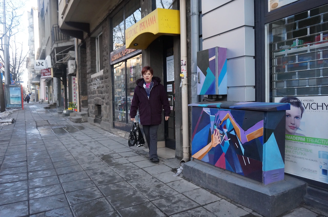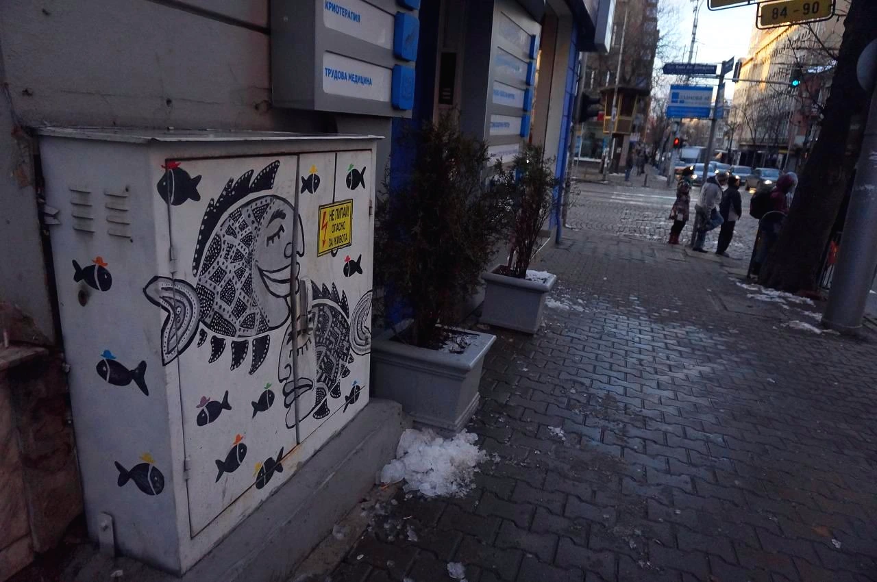 차르 쉬슈만(Цар Шишман, Tsar Shishman)거리의 전기박스 10여개만 아름답게 꾸몄다.