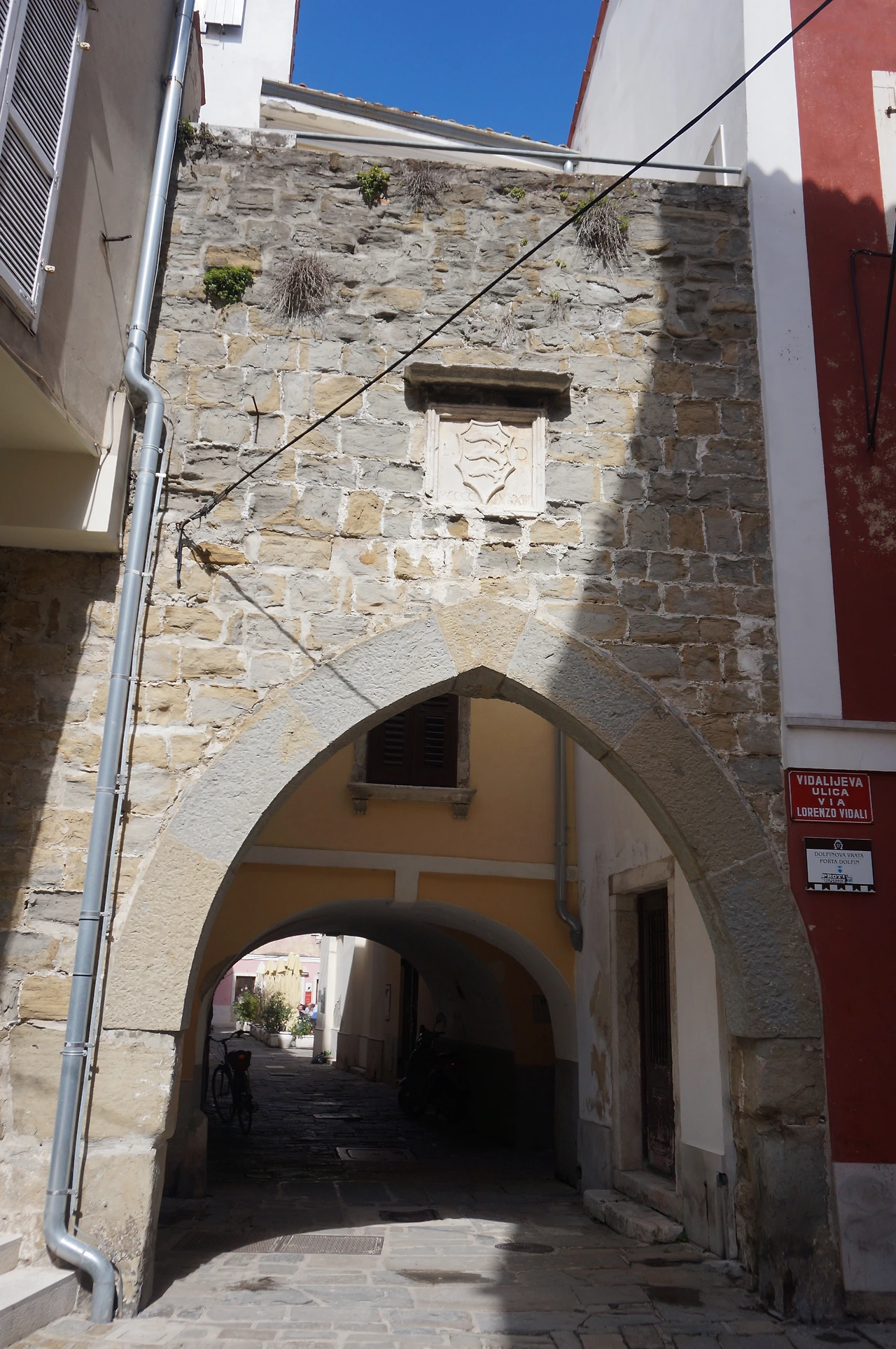 중세식 고딕 건축 마을, 슬로베니아 피란(Piran)의 파란 바다