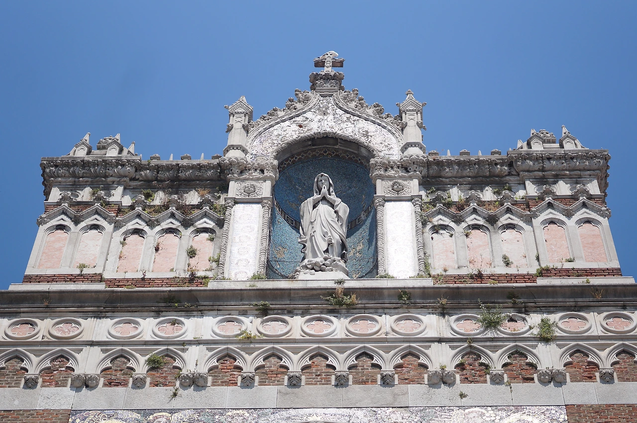 성당 앞 계단으로 올라가면