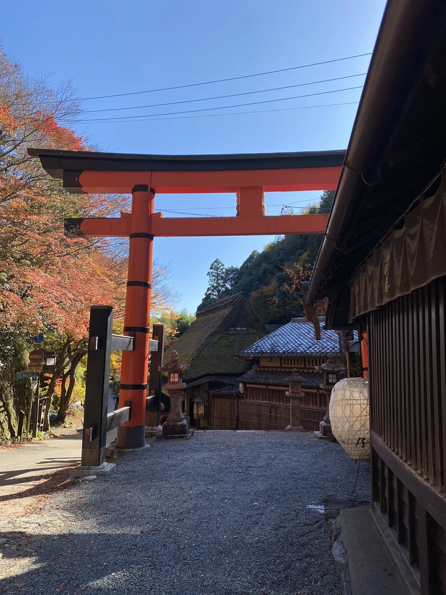 날씨가 정말 좋았고, 사람들이 많이 없는 곳이었던 데다, 기모노를 입어서 그런지 걸음이 자연스럽게 느려져서 아라시야마의 단풍을 여유롭게 즐길 수 있었다. 길을 따라 주욱 걷다 보니 작은 신사가 나왔고 그 앞의 가게에서 말차와 함께 당고를 먹었다. 새소리 들리고 바람에 나뭇잎 사락사락거리는 소리와 함께 올려다본 하늘은 새파랗고. 불과 며칠 전에 잠실의 고층 사무실에서 말라가던(?) 내 모습이 오랜 과거가 된 듯한 느낌이 들었다. 도게츠교 너머의 절경도 좋지만 그 많은 인파를 헤치고 다니기엔 자신이 없었는데, 아라시야마의 본류에서 빠져나와 구석진 길들을 다니면서도 충분히 단풍을 즐길 수 있었다.