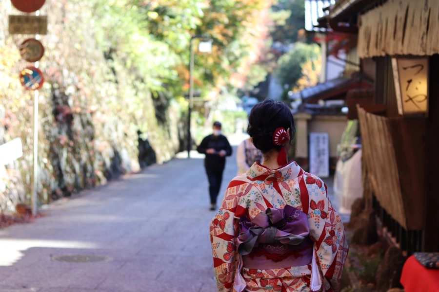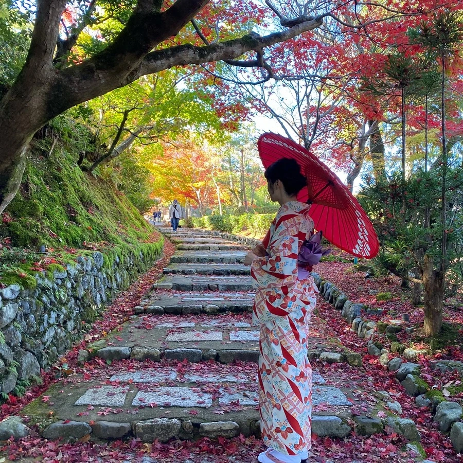 오후 5시 반까지 반납해야 한다고 했다. 나는 아라시야마에서만 입을 생각이었기 때문에 시간은 오케이. 기모노를 5천엔 짜리로 골랐고, 이것저것 소품까지 해서 6천엔 정도 들었던 것 같다. 기모노 차림으로 아라시야마를 거닐면 나도 모르게 사진이 찍히는 경우도 있고, 특히 서양 관광객들은 인사를 하고 지나간다 ㅋㅋㅋ 합장하면서 인사하는데 묘하게 열받음.. ㅋㅋㅋㅋ 약간 관종이 된 느낌인데, 그것마저 즐기는 태도로 여행해야 함을 각오해야 한다. 기모노 차림은 어쨌든 눈길을 많이 끌기 때문에… 걷다 보면 커플이 기모노를 맞춰 입은 모습도 보이고, 결혼 촬영하는 모습도 왕왕 볼 수 있다.