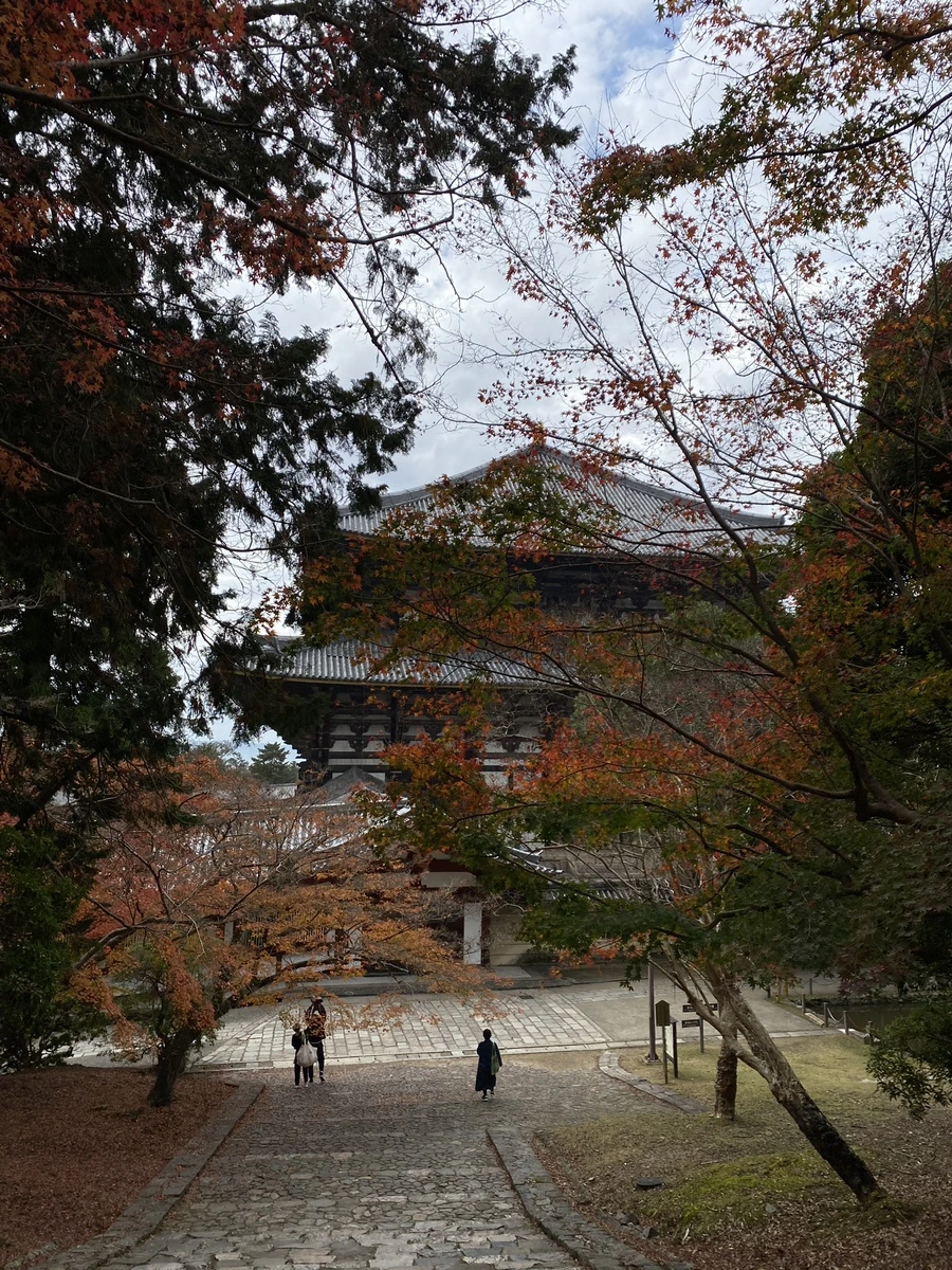 동대사 안의 마지막 가을 단풍을 보면서 유유자적 여유롭게 걷다 보니 이월당이 나왔다. 일본 드라마를 보다 보면 절에서 소원을 비는 모습을 자주 볼 수 있다. 그 간 한 번도 해본 적이 없는데, 왠지 나라에서는 해보고 싶어졌다. 세전함에 동전을 던지고 종을 울리고 소원을 빈다. 뭔가 이루어질 것 같은 기분이 들었다. 그리고 나라의 전경을 내려다봤는데 낮고 안정적인 스카이 라인이 나라만의 분위기를 자아내는 듯해 정말 좋았다. 여기서 며칠 머물 수 있으면 정신이 차분해지고 좋을 것 같은데. 친구가 나라는 차가 없으면 정말 다니기 불편하다고 했다. 버스나 전철이 잘 없다고. 하긴, 나도 관광객이다 보니 당일치기로 전철 타고 역에서 갈 수 있는 동대사 정도만 방문했지. 다음에 기회가 된다면 나라에서 숙박도 해보고 싶다는 생각을 했다. 아주 느릿하게 여행하면서.
