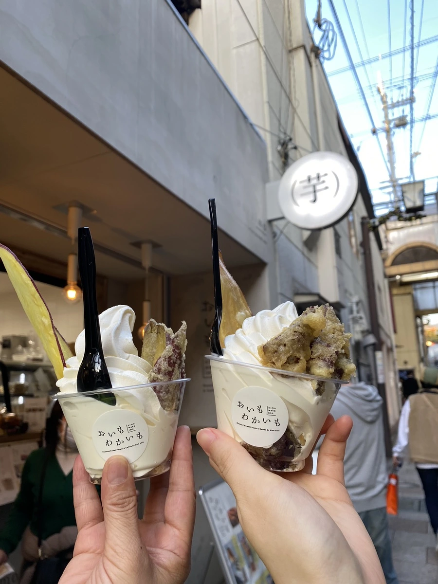 소프트 아이스크림 좋아한다고 했더니 친구가 근처에 고구마튀김을 얹은 소프트 아이스 가게가 있다고 해서 같이 갔다. 이름은 ‘오이모와카이모’. 구글 맵에는 나오지 않는 것 같은데 카메야 근처의 좁은 골목에 있었다. 아이스크림도 좋아하고 고구마도 좋아하는 내 입장에서 최고의 디저트. 아이스크림 위에 입자가 있는 소금을 올려주는데 그래서 단맛이 더 강조되었다. 양이 꽤 많아서 다 먹지 못하고 남겨버림. 지금도 가끔 생각나는 맛이다.
