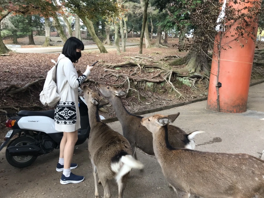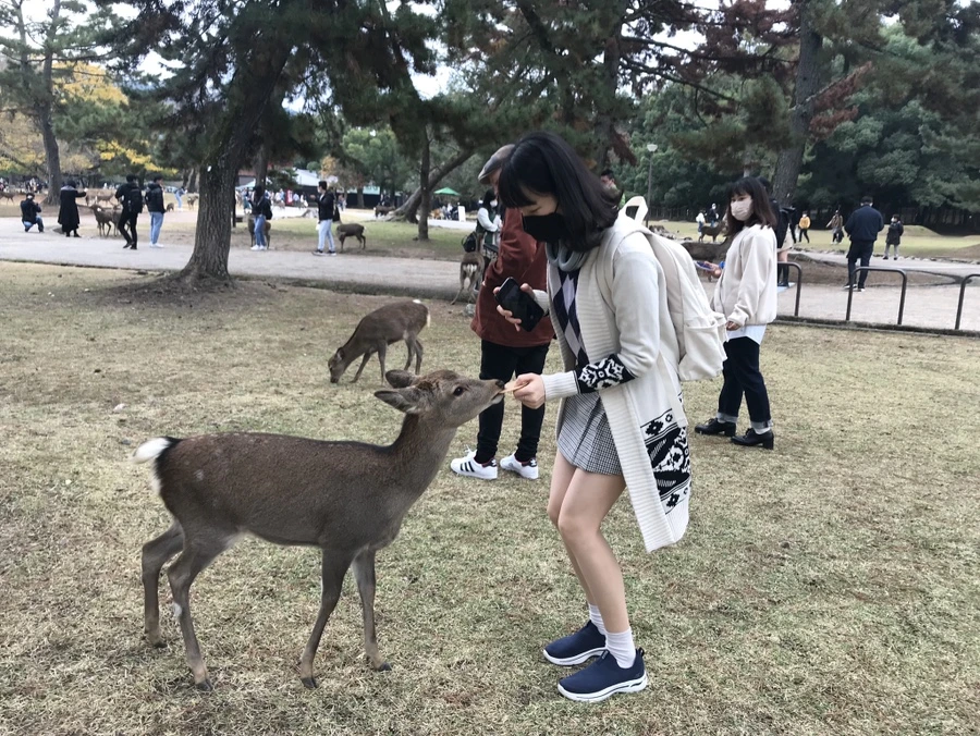 사슴을 처음 봤을 때는 우와 신기해 싶었지만 계속 보다 보니 여기저기 사슴이라ㅋㅋㅋ 그리고 아무래도 사슴이 깨끗하지 않을 것 같고 예민한 동물인 것 같아 나는 쓰다듬을 엄두가 나지 않던데, 친구는 아주 키우는 강아지 만지듯이 사슴을 우쭈쭈 쓰담 쓰담하고 있었다. 과연, 이것이 사슴의 도시, 나라 사람의 멘탈이구나 싶었다. 한 마리 집에 데려가는 줄.
