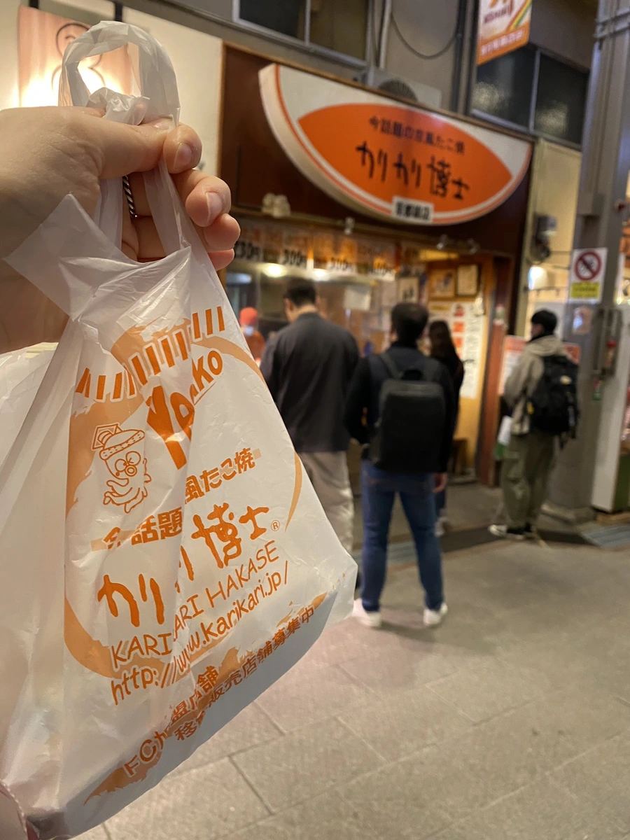 교토로 돌아오니 배가 출출해져서 야식으로 먹으려고 니시키 시장을 구경하다가 타코야키를 샀다. 사람들이 줄을 서 있길래 뭔가 했더니 타코야키였던 것! 나도 생각 없이 줄을 섰는데 내 앞에 서 있던 분이 저기 티켓 기계에서 계산하고 티켓을 받고 나서 줄을 서면 된다고 했다. 몰랐으면 계속 서있기만 했을 뻔.. 감사하다고 말씀드리고 파를 얹은 타코야키를 주문, 기계에서 표를 받아 직원분께 드렸다. 가격이 상당히 저렴했다. 네기 붓카케(파 얹은) 6알에 260엔.