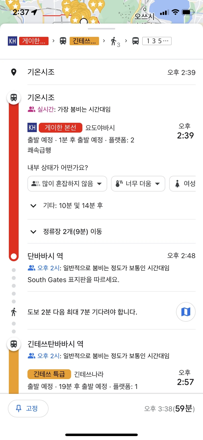 하지만 여행자의 친구, ‘구글맵’만 있으면 어디서 어떤 라인을 타야 하는지, 몇 분 후에 오는지, 몇 번 플랫폼에서 타야 하는지 등을 편리하게 확인할 수 있다. 구글맵 없었으면 어쩔뻔했어… 하지만 나는 이렇게 구글맵만 믿고 ‘교토에서 나라 가기 참 쉽구먼!’ 했다가 큰 코를 다치게 되는데.. 나는 교통패스를 별도로 끊지 않고 이코카 카드로 다녔고, 나라까지도 이코카 카드만 찍고 가면 되는 줄 알았다.