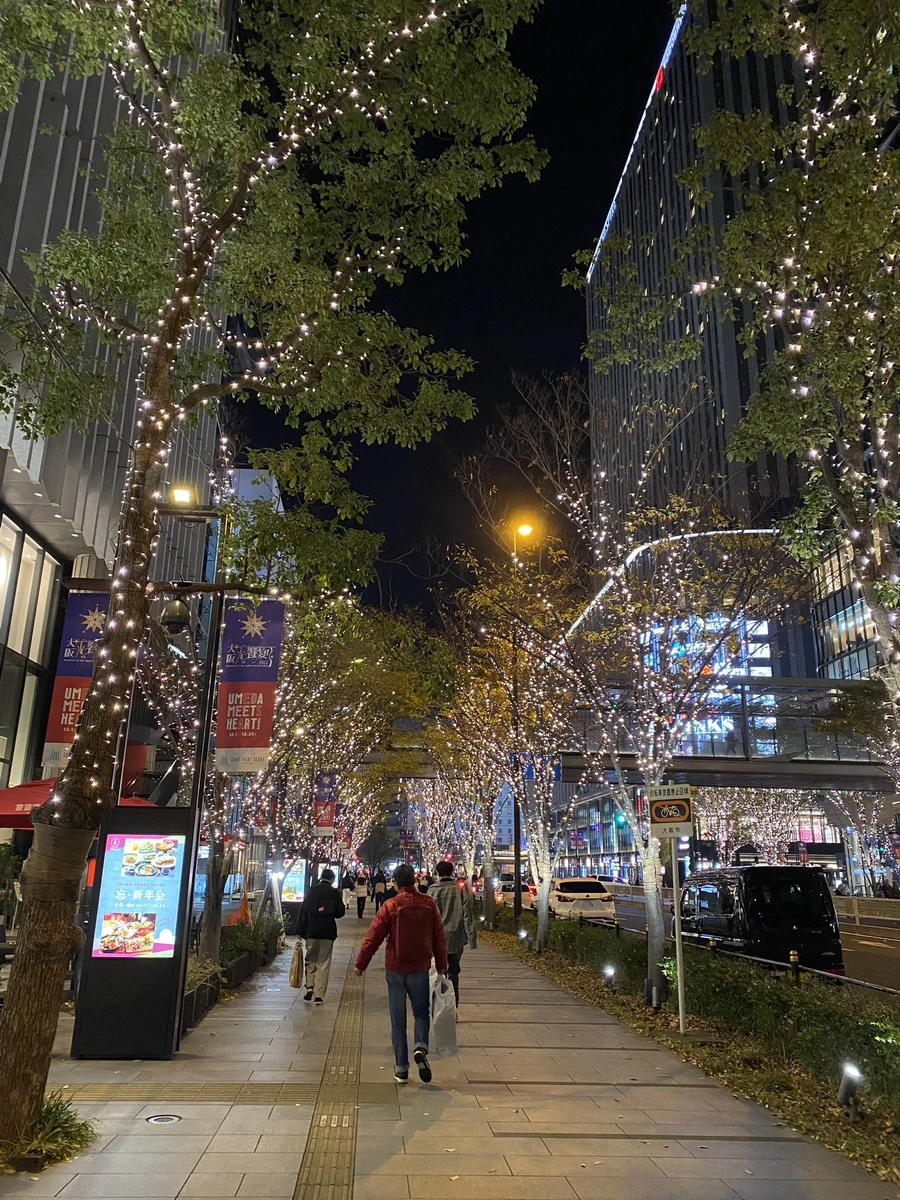 우메다에 왔으니 공중정원을 가야지. 공중정원은 30층정도 높이의 전망대로, 6년 전에 친구와 둘이서 가 본 적이 있다. 우메다의 반짝거리는 야경이 예뻤던 기억이 있어서 이번에도 가보기로. 다만, 공중정원은 우메다역에서는 좀 먼데, 역에서 걸어서 20분 정도 걸렸던 것 같다. 구글맵을 켜놓고 걷고 있으면 나랑 비슷한 방향으로 걷는 사람들이 있어서 헤맬 걱정은 없었다.