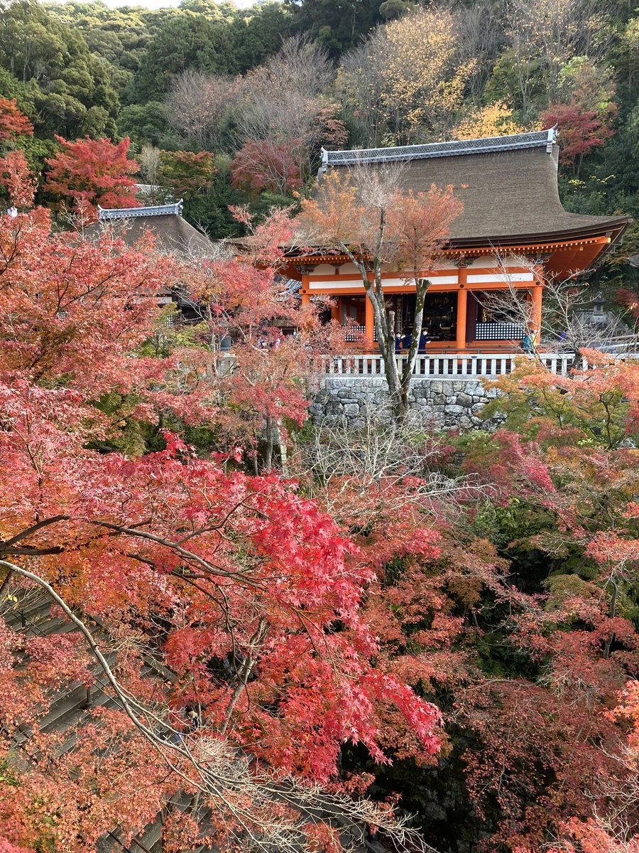 일요일이었지만 일찍 가서 그런지 표 구매는 줄 안 서고 금방 완료. 하지만 본당 쪽으로 가니 일본인 관광객들, 수학여행 온 일본 학생들에 외국인 관광객들이 벌써 우글우글했다. 아찔한 절벽 위에 자리 잡은 본당에 서서 아래를 내려다보니 교토에서 가장 원색적인 단풍이 눈에 들었다. 과연 절경이구나 싶었다. 계속 바라보고 있을 수 있을 것 같았는데 꾸역꾸역 밀려오는 사람들을 보고 아쉬운 마음을 뒤로하고 후퇴. 사진 찍고 있는 사람들도 많은데, 반가운 한국어가 들려서 보니 한국분들도 많이 와계셨다. 내적 친밀감이 발동해서 사진을 찍어드리기도 하고 찍어달라고 부탁드리기도 했는데 역시 사진은 한국사람들이 제일 잘 찍는 듯하다!