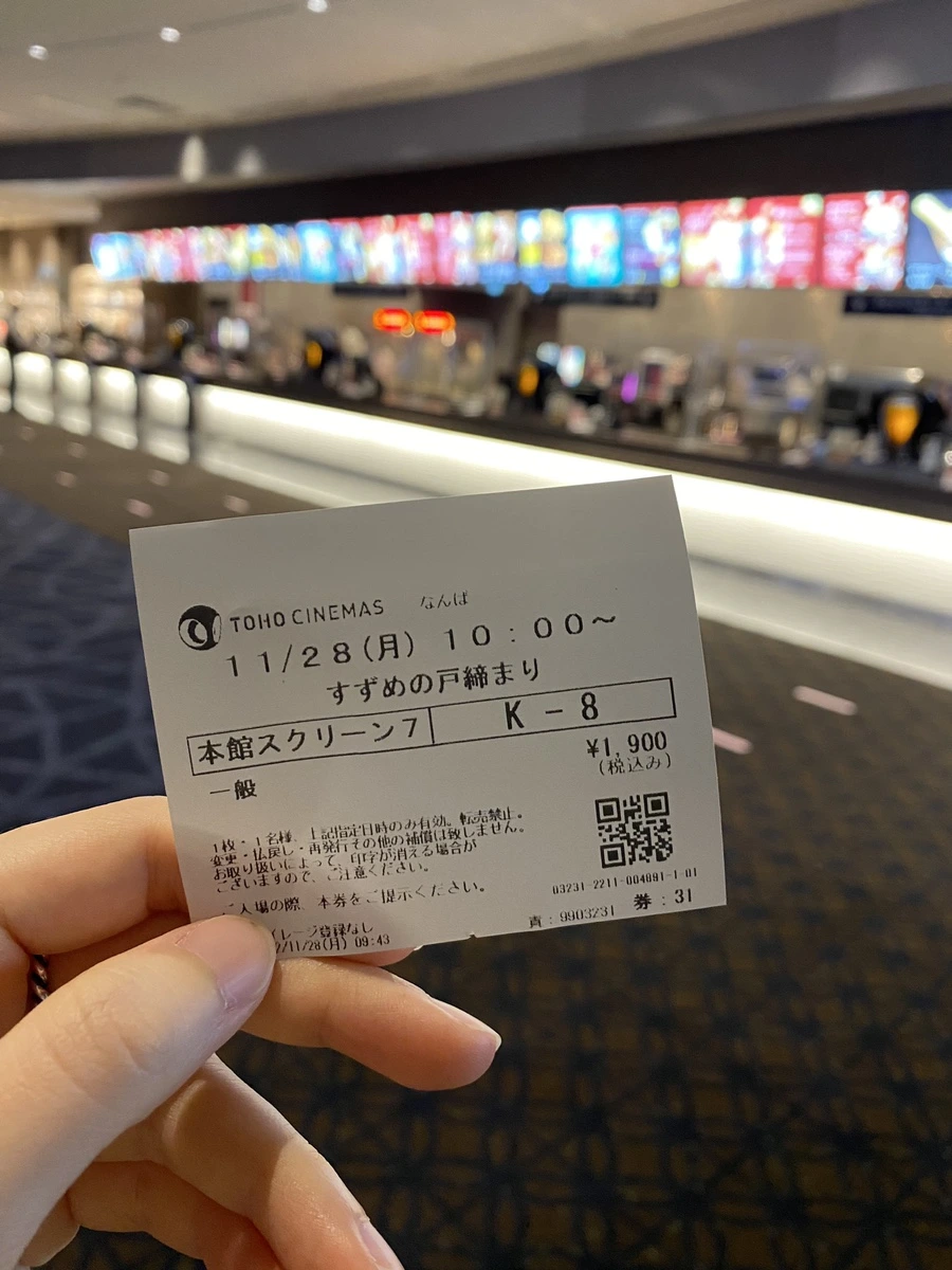 29일 아침 비행기로 귀국이었기 때문에 이 날은 실질적인 여행 마지막날이었다. 고베를 갈까 고민했었는데, 여행 기간 내내 아침방송에서 ‘신카이 마코토’ 감독과 그의 최신작품 '스즈메의 문단속' 이야기가 나와서, 흥미가 생겨 영화를 보러 가기로! 그리고 쟈니즈 소속 연예인의 굿즈를 살 수 있는 쟈니스샵도 들를 예정이고, '고독한 미식가' 스타일의 오뎅야를 찾아갈거라 오늘은 오타쿠의 날로 하기로 했다. 이번 여행 기간 동안 TV를 틀면 월드컵 축구 이야기랑 스즈메의 문단속 이야기가 참 많이 나왔던 듯.