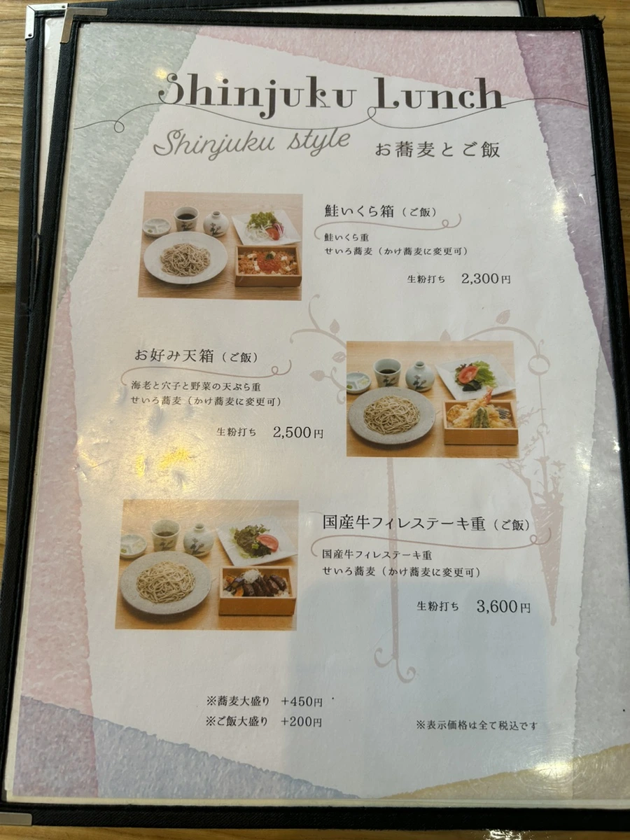 원래 이 날 점심은 다카시마야 백화점의 ‘닌교초 이마한’에서 스키야키를 먹고 싶었는데, 점심 오픈런을 했지만 오늘 예약이 다 차있다고 해서 실패. 13층에 소바가게가 있어서 깔끔하게 소바를 먹기로 했다. 이른 시간이라 그런지 창가 자리에 앉을 수 있었고, 식사를 하는 중에 손님이 계속 들어와 곧 만석이 되었다.