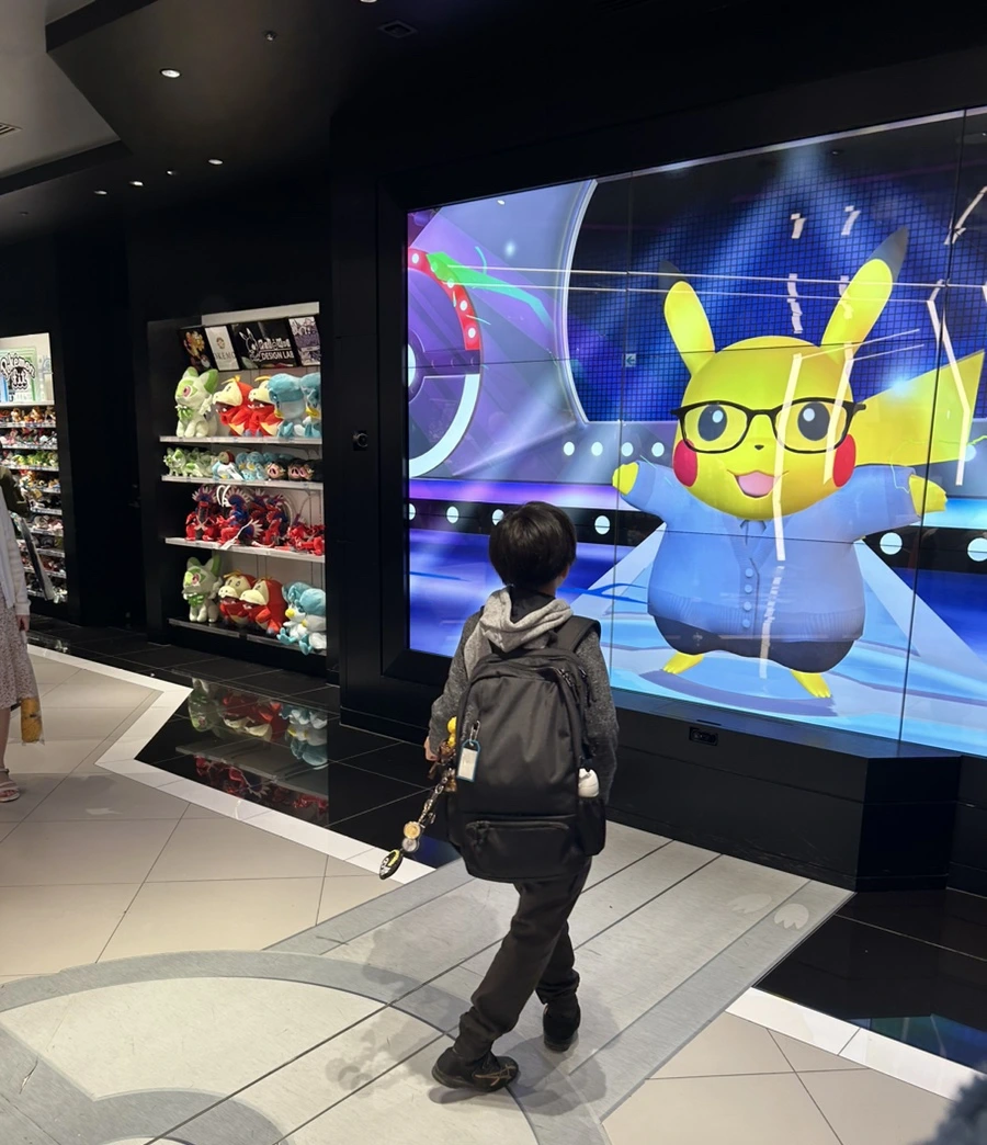 포켓몬 센터도 구경했는데, 역시 귀여운 것 투성이라 눈돌아갔다. 가장 인상깊었던 점은 여기 스크린이 있는데 이 앞에서 사진을 찍으면 내 모습이 반영된 피카츄가 영상으로 나온다! 어떤 안경 쓴 꼬마가 사진을 찍고 몇 초 지나니 꼬마를 빼닮은 안경 쓴 피카츄가 등장! 아이가 어찌나 좋아하던지. 지켜보는 나를 비롯한 어른들도 너무 흐뭇한 광경이었다. 이런 서비스들이 있으니까 아이도 어른도 여전히 포켓몬을 좋아하는 거겠지. 팬이라면 꼭 한 번 방문해보기를 추천한다.