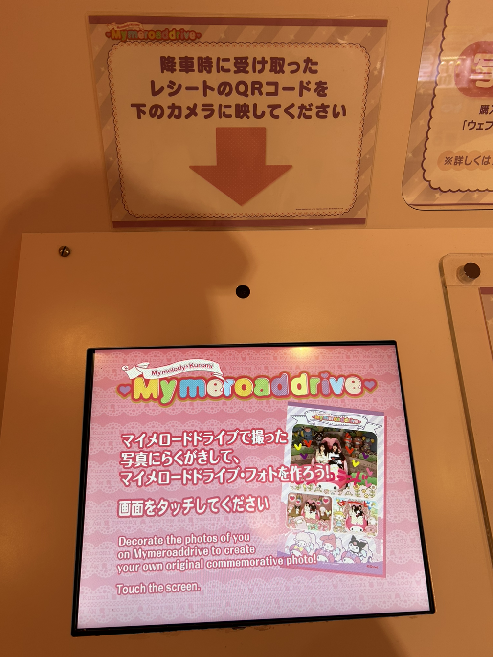 라이드에서 내리면 라이드 중에 찍은 사진을 확인하고 인화할 수 있는 QR코드를 받는다. 퇴장하는 쪽에 사진 확인하는 기계가 있는데, 궁금해서 QR을 읽혀봤다. 사진은 총 3장 나오는데, 스티커 사진처럼 스탬프로 꾸밀 수도 있다. 그런데 제한시간이 너무 빠르게 흘러가서, 쿠로미 도장 몇 개 찍었더니 사진 꾸미는 시간이 끝나버렸다. 추억 삼아서 인화까지 하기로 했다. 카운터로 가서 결제를 하면 인화된 사진과 함께 사진을 다운로드할 수 있는 링크도 받을 수 있다.(링크는 방문일로부터 한 달까지 유효하다고 한다) 마이멜로디와 함께 한 1,000엔짜리 추억이 생겼다.