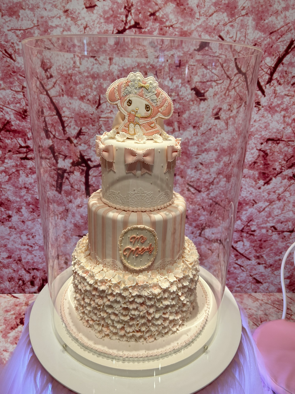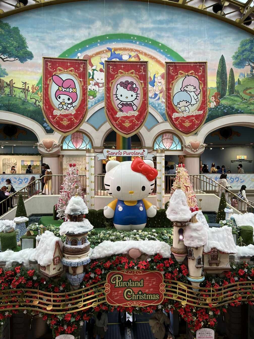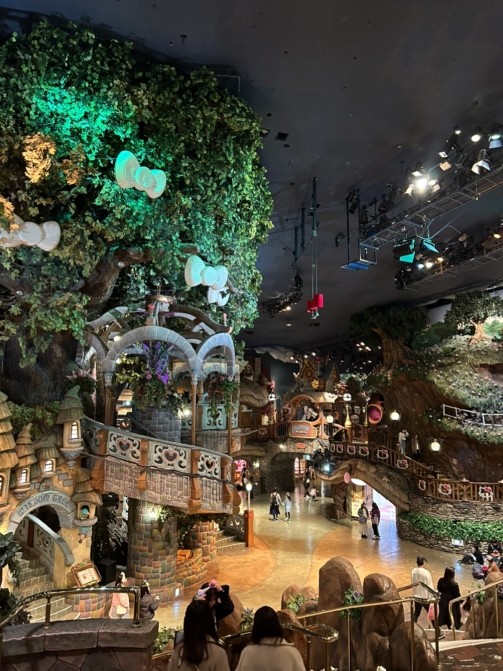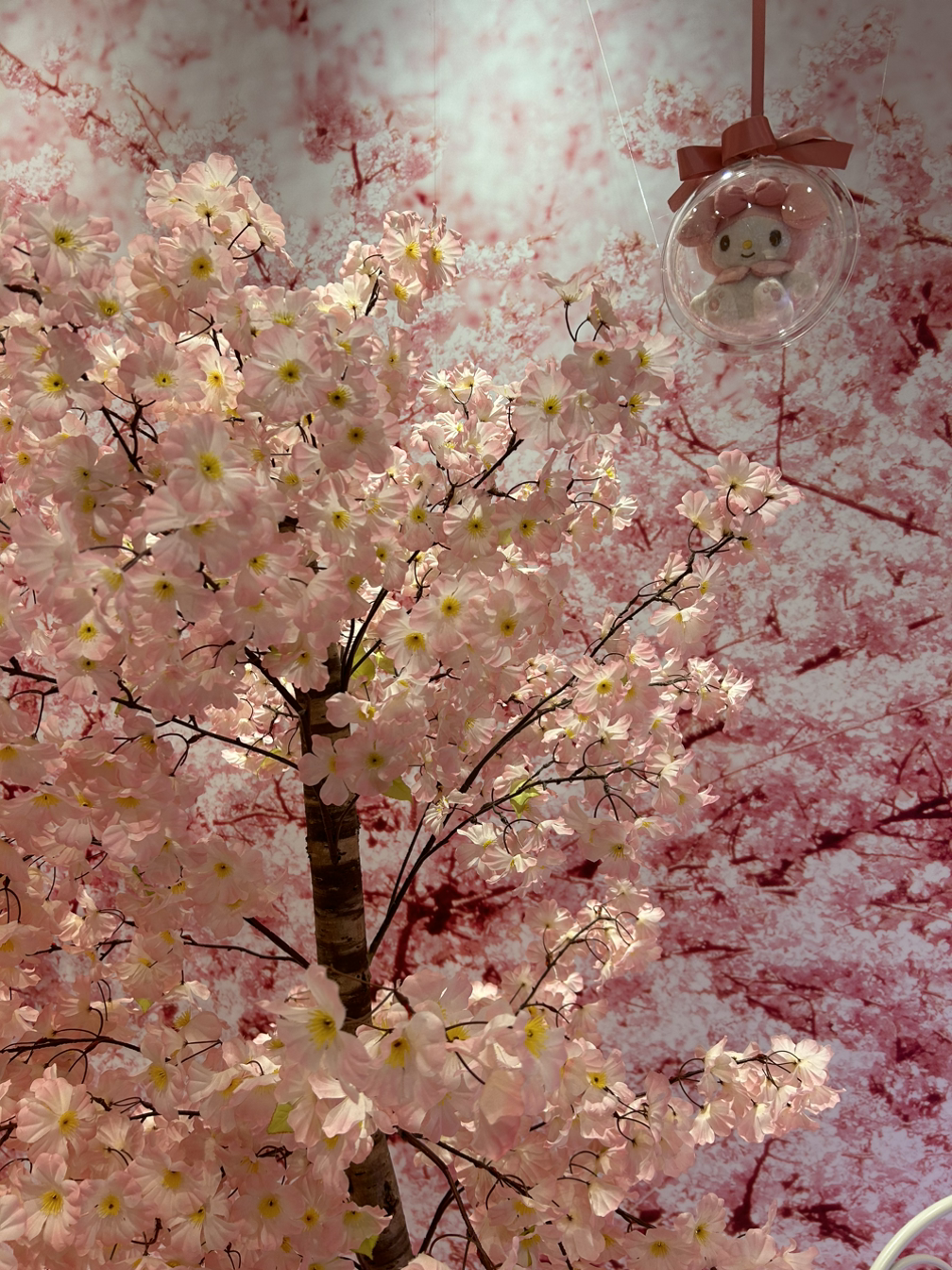 어트랙션을 벗어나 나오니 쇼를 하고 있었다. 앙증 깜찍한 퓨로랜드인 줄 알았건만, 공중 곡예쇼라니.. 그 다이내믹함에 놀라며 구경을 조금 하다가 밥을 먹으러 가기로 했다. 4층에 식당이 있어서 4층으로 올라갔는데, 여기저기 귀엽게 꾸며진 캐릭터 존들이 시선을 사로잡았다. 특히 마이멜로디 샵에서는 분홍색 마이멜로디 트리에, 인형에, 핑크공주들 눈물 흘릴만한 귀여운 포토스팟들이 많았다. 마이맬로디 굿즈샵에서 정면으로 헬로키티 동상(?)이 보이는데, 산리오의 레전드 헬로키티의 위엄이 느껴졌다. 확실히 전 세계적으로 가장 히트한 산리오 캐릭터는 헬로키티일 테니까. 개국공신 같은 포지션이 아닐까.