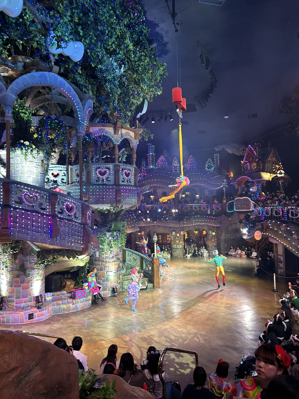 캐릭터 그리팅 장소 바로 옆에 'Mymeroaddrive'라는 어트랙션이 있어서, 뭐 하는 건지도 모른 채 무지성으로 줄을 섰다. 보니까 라이드 어트랙션이고, 이름을 보아하니 마이멜로디의 탄생과 그 친구들을 만나는 콘셉트인 듯하다. 줄이 꽤 길었는데 어린아이들 동반한 가족들도 있었고 커플도, 친구들끼리 온 어른들도 있었다. 만인의 사랑을 받는 산리오구만 싶었다. 30분쯤 기다렸다가 탈 수 있었는데, 어린아이들 타깃인지 라이드 크기가 좀 작았다.. 라이드에 앉으니 무릎이 닿더라. 키가 크신 분들은 옆으로 몸을 꾸깃해서 타셔야 할 듯. 타고 가면서는 몇 번이고 사진 찍는 구간도 있었다. 사진 찍는 거 티가나게 캐릭터 목소리가 나와 하나 둘 셋! 하면서 찍기 때문에 포즈 취할 여유가 있었다. 전형적인 어린이용 어트랙션이었지만, 귀여운 캐릭터 구경하는 재미가 있어서 나쁘지 않았다. 참고로 퓨로랜드에도 줄을 오래 서지 않고 어트랙션을 타거나 쇼의 좋은 자리를 선점할 수 있는 '퓨로패스'가 있는데, 오래 기다리기 싫은 사람은 현장에서 퓨로패스를 구매하면 된다.