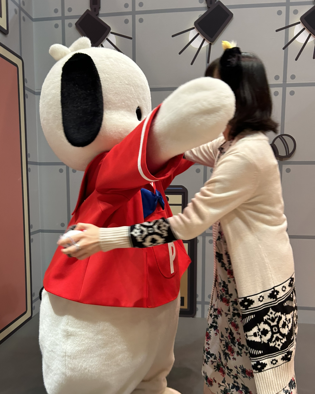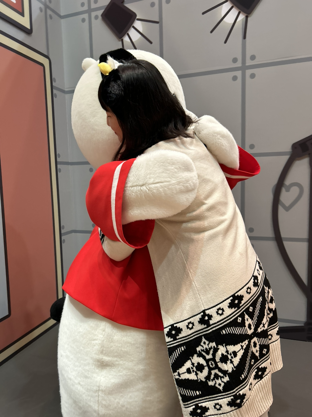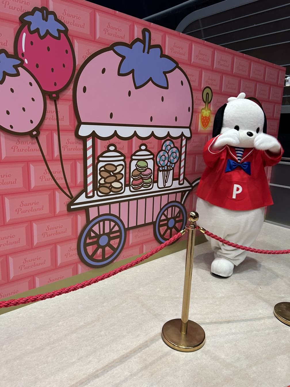 내 차례가 되어 카메라를 스태프 분에게 드리고 포챠코에게 다가갔다. 나름 포챠코에게 어필한다고 포챠코 머리띠를 끼고, 포챠코 인형도 든 채로. 우리 상냥한 포챠코는 폴짝거리면서 상냥하게 인사하고 손도 잡아주고 급기야는 포옹까지 해주었다! (오타쿠 심장 터져요.. ㅠㅠ) 코로나 시기 때는 손잡기나 포옹이 안되었던 것 같은데, 이제 위드코로나 시대가 되면서 더 적극적으로 팬서비스를 해주나 보다. 보들보들한 손으로 내 손을 꼬옥 잡아주었는데, 스태프 분이 찍어주신 사진을 보니 내 표정이 정말 가관이었다.. 잇몸 마를 정도로 활짝 웃고 있는 나의 얼굴... 회사에서는 입꼬리조차 씰룩이는 경우가 드문데, 도쿄에 와서는 입이 찢어져라 웃고 다니고 있다. 포챠코와 포옹하는 순간도 정말 여러 장 찍어주셔서, 스태프 분께 지금도 너무 감사할 따름이다. 산리오의 캐릭터를 좋아한다면, 퓨로랜드에서 반드시 캐릭터 그리팅을 해보길 강력히 추천한다. 그야말로 꿈이 이루어지는 순간이었다. 오타쿠는 또 1년을 살아갈 힘을 충전할 수 있었다고.
