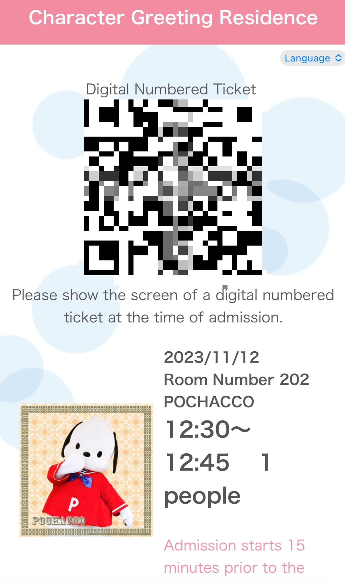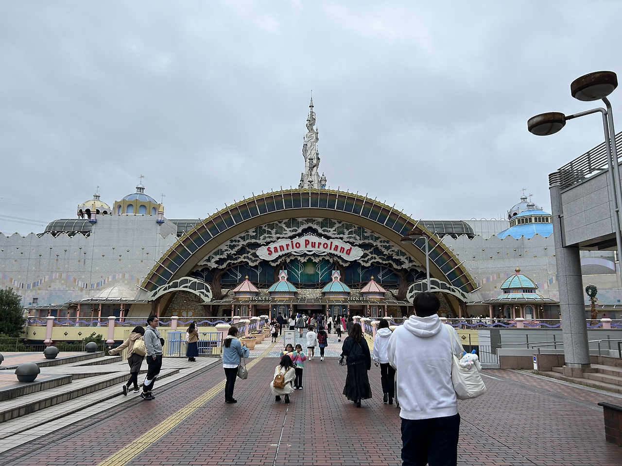 흐린 하늘 아래서도 위풍당당하게 빛나는 산리오 퓨로랜드가 보였다. 입장 대기 줄이 조금 있었지만 5분도 안되어 입장 안내 직원을 만났는데, 입장 전에 앙케트 작성도 해야 했다. 별 건 아니고, 산리오 퓨로랜드 입장을 위해서는 티켓 구매 후 사전 예약이 필요한데 외국인의 경우 해당 예약을 간단한 설문조사로 대체하는 것. 앙케트 페이지 접근하는 것까지 직원분이 도와주셨다. 앙케트 완료하고 입장권 QR 찍고 입장하니 산리오 세상이다!