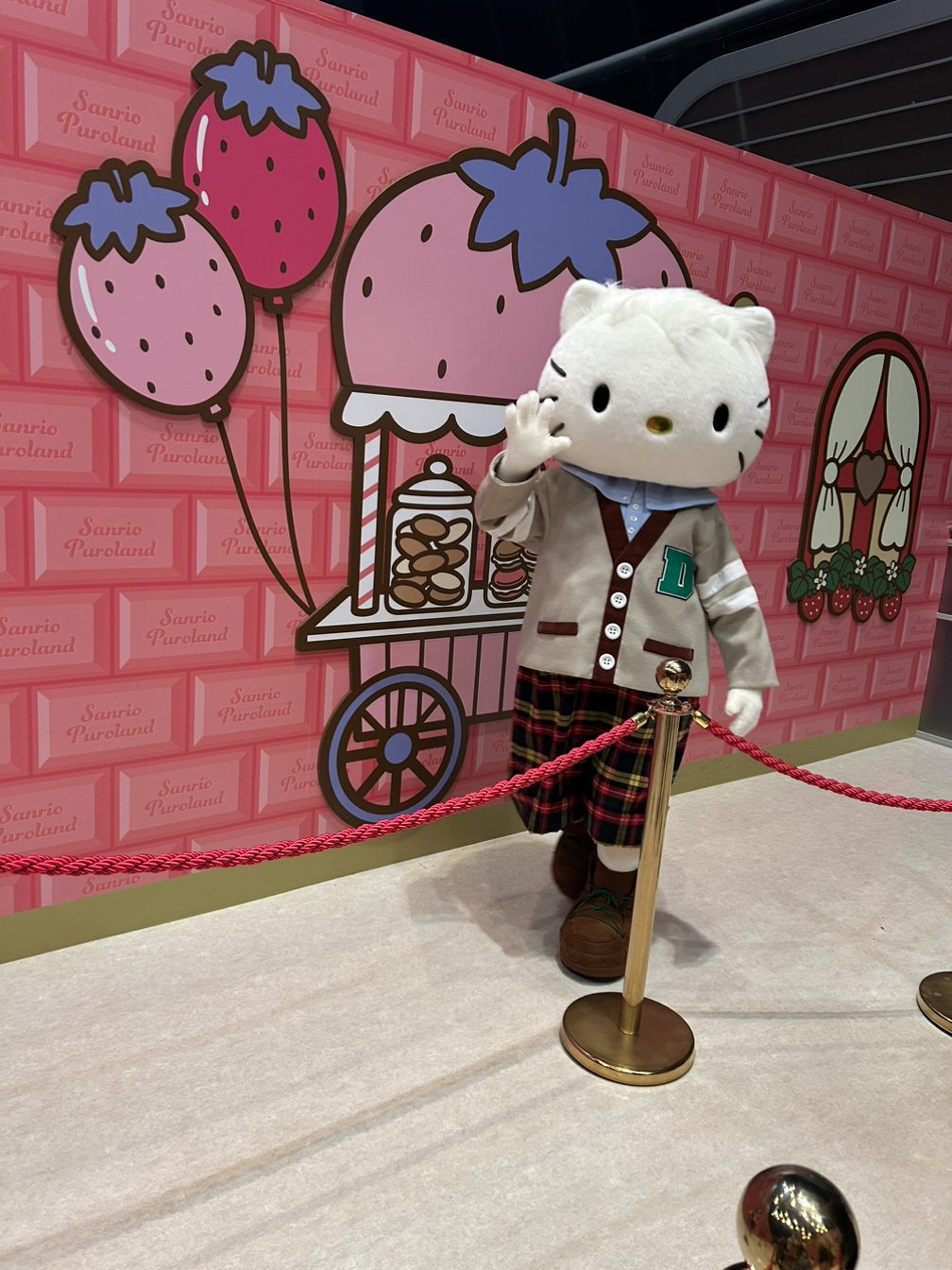 여러분, 헬로 키티도 세계관이 있다는 걸 아시나요. 헬로키티는 영국 런던 출신이고, 키티의 아빠가 '조지 화이트' 엄마가 '메리 화이트', 그리고 헬로키티는 '챠미 키티'라는 반려묘도 있다고 한다!(고양이가 고양이를..?! 하고 생각할 수 있지만 헬로 키티는 고양이가 아니라 고양이의 의인화 캐릭터라고) 그리고 키티는 친구들도 많다. '디어 다니엘'(키티와 소꿉친구사이고, 현재 남자친구라고 한다), '피피'(수다스러운 양이라고) 등. 아무튼 다시 보니 다니엘은 키티와 다르게 앞머리도 있고, 카디건에 D라고 이니셜이 쓰여 있었다. 한국에서는 유명하지 않지만 일본에서는 꽤 많은 팬들을 거느린 캐릭터인 듯싶었다. 팬들에게 손을 흔들며 여유롭게 지나가는 그의 모습에서 내한한 팝스타의 모습이 겹쳐졌다.