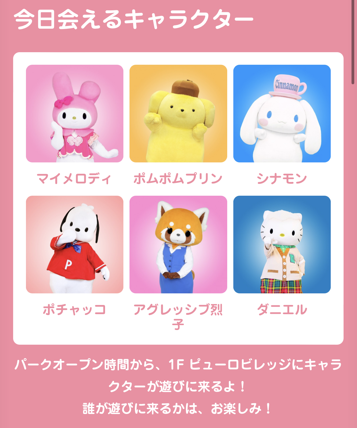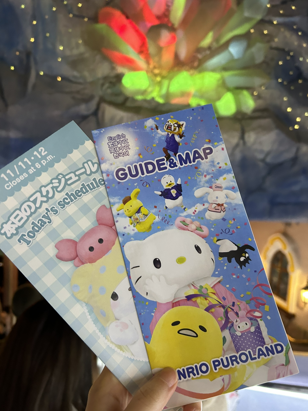 내가 여행하는 기간 동안 도쿄에 비가 오락가락하는 날이 많았다. 날씨를 보고 비가 오는 날 실내인 산리오 퓨로랜드를 가야지 생각했었기 때문에, 티켓을 미리 예약하지 못했고 전날에서야 방문일정을 확정했다. 산리오 퓨로랜드 입장권을 네이버에서 검색하면 구매처가 여러 군데 나오는데, 구매하면 입장 QR 티켓이 바로 이메일로 날아온다. 고로, 전날 밤에 급하게 표를 구했어도 다음날 아침 입장에 아무런 문제가 없다! 현장 구매보다 사전 구매하는 편이 가격이 저렴하기 때문에, 미리 사두는 것을 추천한다. 나는 22,890원에 구매했는데, 현장에서 사면 퓨로랜드 운영 시간에 따라 3,900엔~4,900엔 사이라고 한다. 입장권에는 어트랙션 탑승 및 쇼 관람이 다 포함되어 있다(빠른 입장을 보장하는 '퓨로패스' 구매는 별도). 일자별로 운영 시간과 입장료가 다르기 때문에 미리 홈페이지에서 확인해 두는 게 좋겠다. (https://www.puroland.jp/) 진행하는 쇼 일정과 함께 캐릭터 그리팅을 신청할 거라면, 해당 일에 출근하는 캐릭터도 홈페이지에서 확인할 수 있으니 반드시 사전 확인! 내가 가는 날은 9시 30분부터 오픈이라 거기에 맞춰서 움직였다.