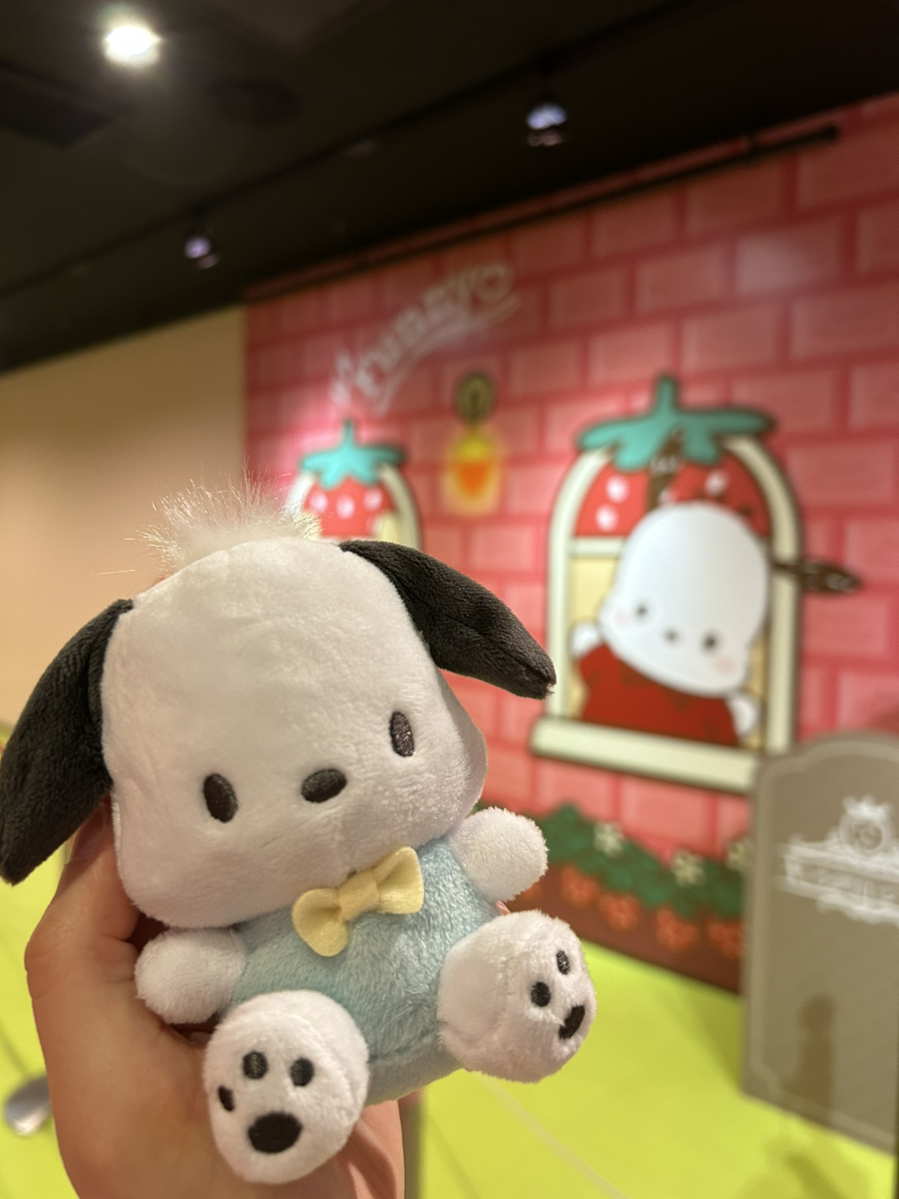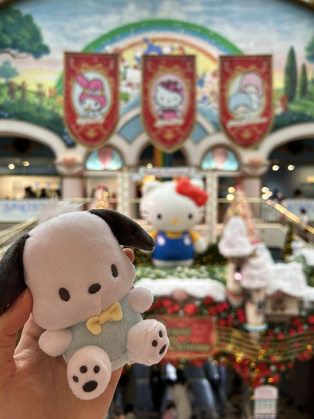 엔트런스 샵은 굉장히 넓은데 산리오 캐릭터들의 인형, 머리띠, 키링, 액세서리, 문구, 옷에 이르기까지 아주 다양한 산리오 상품들을 판다. 긴자의 산리오 월드보다 넓고 라인업이 다양한 것 같았다. 크리스마스 한정 헬로키티와 시나모롤 굿즈가 있었는데 정말 귀여워서 멈칫했다. 하지만 나의 최애는 포챠코고 오늘은 정말로 필요한 것만 사리라 다짐했기 때문에, 포챠코 머리띠랑 인형만 구매했다.(대단한 자제력이라고 스스로를 칭찬함) 머리띠 1320엔, 인형 1980엔. 참고로 5,500엔 이상 구매하면 4층 면세 카운터에서 택스 리펀드 받을 수 있다고 한다.