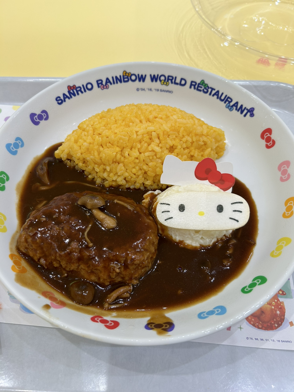 하도 맛없다는 평을 많이 봐서 각오했는데, 의외로 맛있었다. 감자 샐러드에 헬로키티 얼굴이 올라가 있는데 너무나 깜찍. 하지만 먹을 수 없는 재질로 장식되어 있었던 거라 아쉬웠다. 밥과 함바그는 인증샷만 남기고 삭삭 먹어 치웠다. 같은 층에 식사를 하면서 캐릭터들을 만날 수 있는 뷔페식 레스토랑 '야카타 레스토랑'도 있다고 한다(식당 안에 작게 무대가 있다고!). 70분 제한 시간이 있고 요금은 어른 기준 3,200엔이다. 가보지 않아서 정확히 비교는 어렵겠지만, 내가 먹었던 이 식당도 인테리어 귀엽고 가격도 합리적이고 좌석이 많아서 괜찮은 듯싶다.