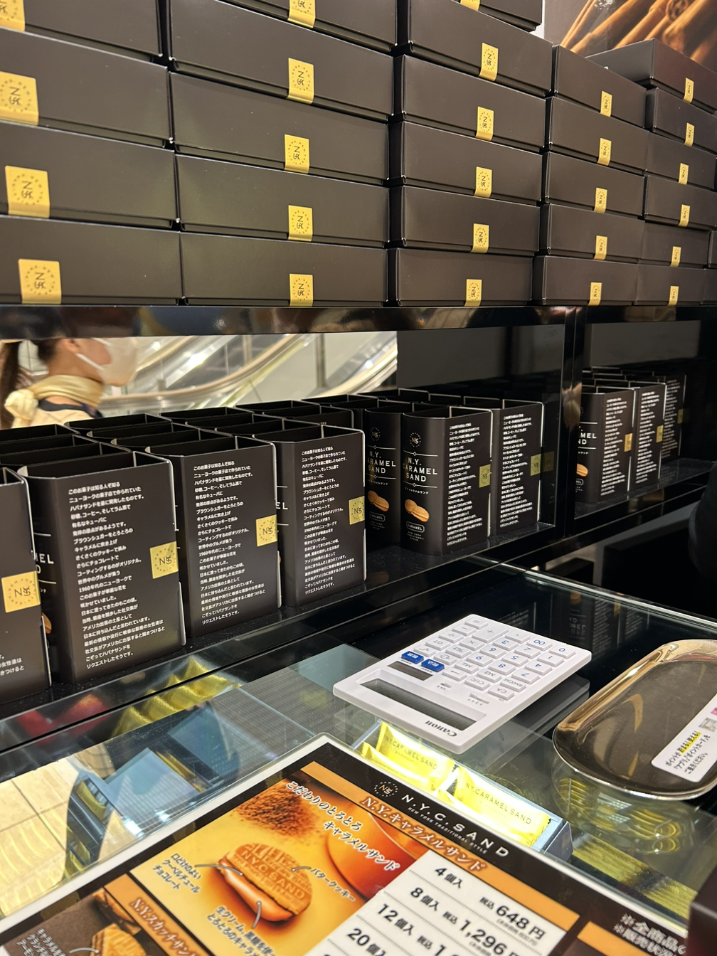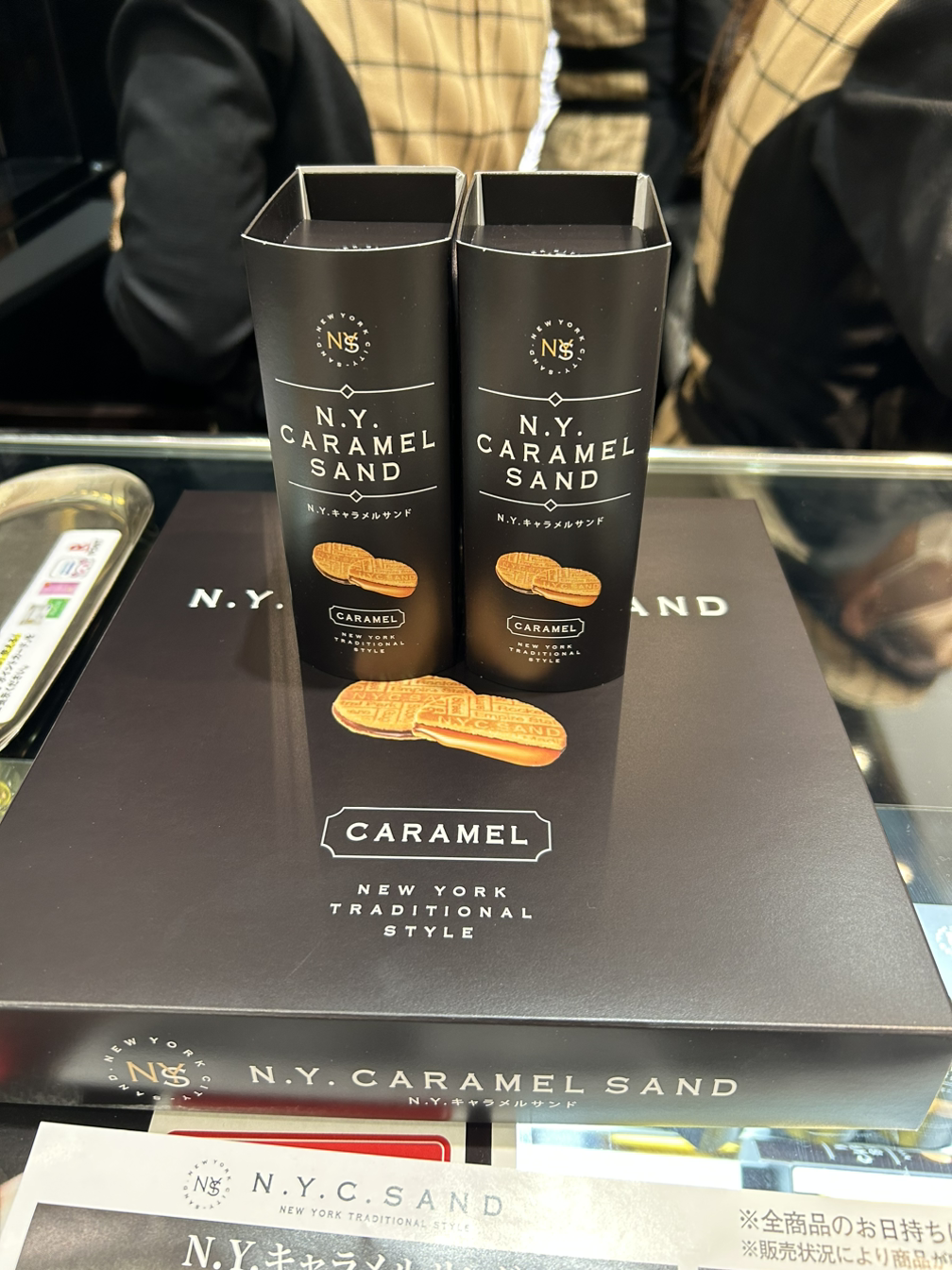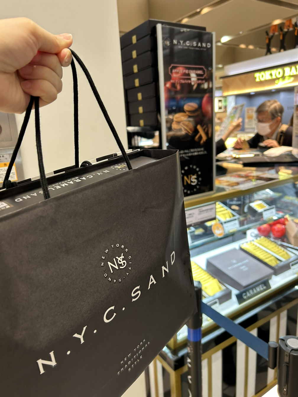 내가 좋아하는 '아라시'의 방송, '아라시니시야가레'의 맛집 데스매치에 나왔던 과자다. 도쿄역 근처의 다이마루 백화점 식품층에는 온갖 인기 있는 디저트 가게들이 모여있는데, 그중에서도 특히 인기 있는 '뉴욕 캬라멜 샌드'. 나는 저녁에 도착했고 가게 앞에 줄 선 사람이 없길래 신나서 달려갔는데, 알고 보니 밖에서 줄을 서야 한단다. 뉴욕 캬라멜 샌드 팻말을 든 직원을 따라 백화점 밖에서 줄 서 있다가, 입장 차례가 되면 백화점 안에서 한 번 더 대기, 그 이후에야 과자를 사러 갈 수 있다. 이 과자 유명해진 지 몇 년 된 것 같은데 아직도 이렇게나 줄을 서야 하다니, 일본 사람들의 디저트 사랑(+줄 서기 인내심)은 정말 대단하다. 그래도 저녁에 가서 그런지 20분 정도 기다려 금방 구매할 수 있었다. 생각해 보면 그때까지 과자들이 품절 안되고 구매할 수 있었던 것도 다행이다.