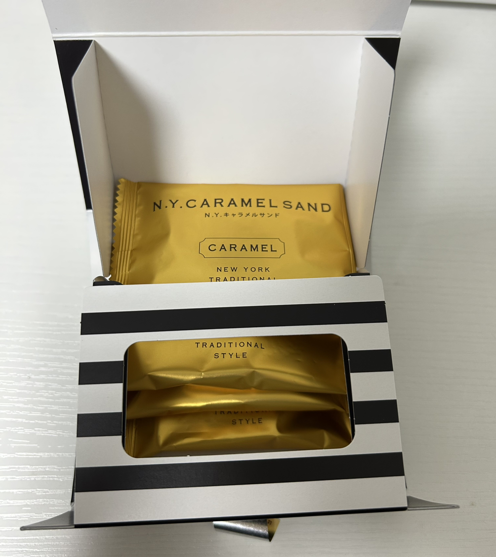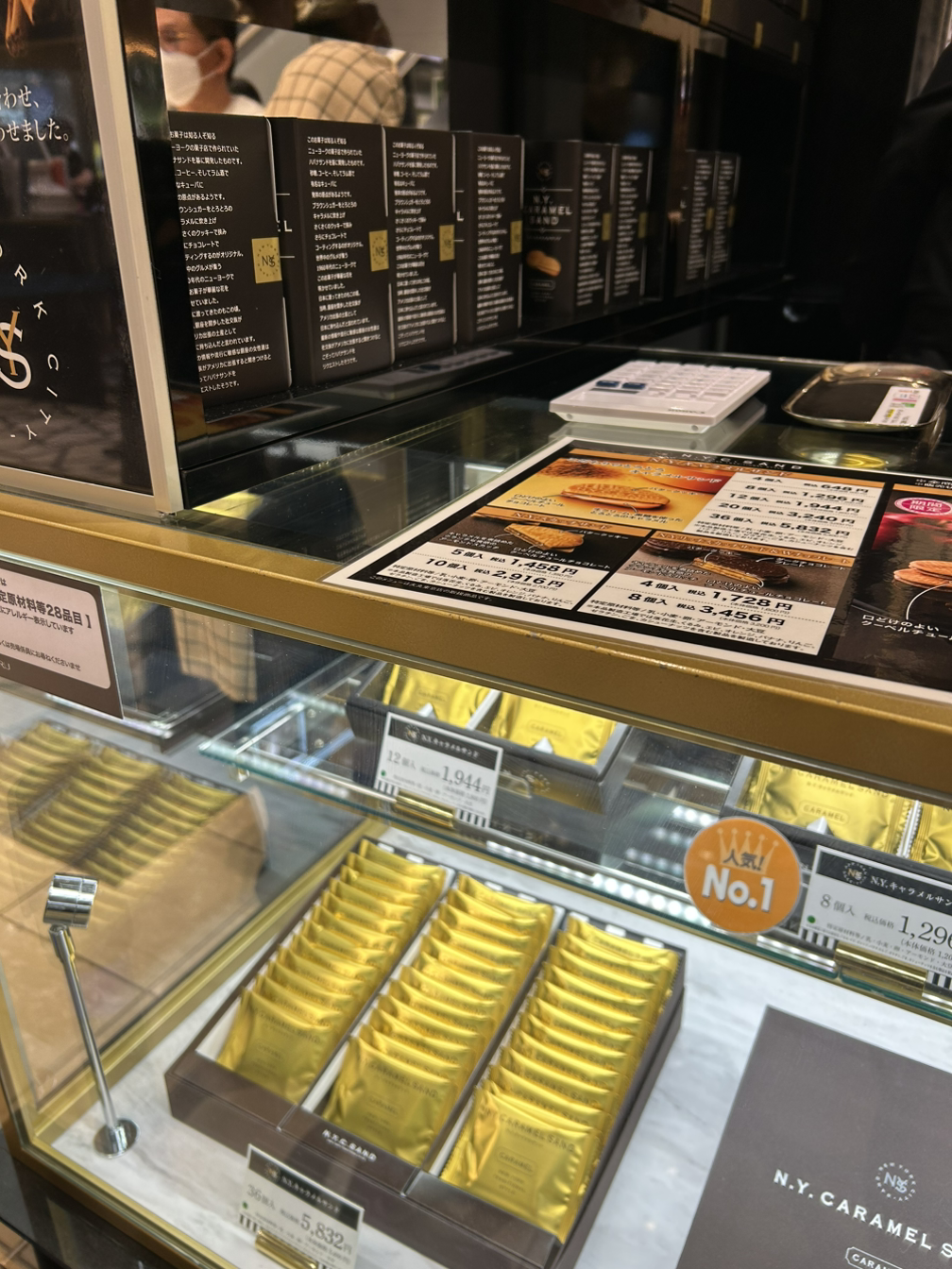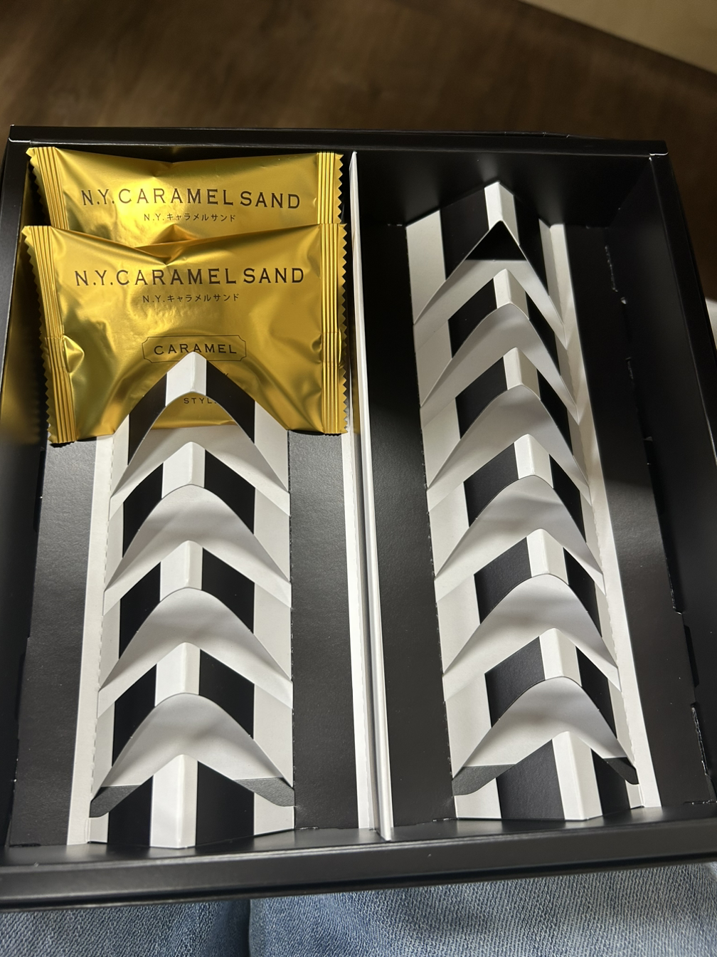 내가 좋아하는 '아라시'의 방송, '아라시니시야가레'의 맛집 데스매치에 나왔던 과자다. 도쿄역 근처의 다이마루 백화점 식품층에는 온갖 인기 있는 디저트 가게들이 모여있는데, 그중에서도 특히 인기 있는 '뉴욕 캬라멜 샌드'. 나는 저녁에 도착했고 가게 앞에 줄 선 사람이 없길래 신나서 달려갔는데, 알고 보니 밖에서 줄을 서야 한단다. 뉴욕 캬라멜 샌드 팻말을 든 직원을 따라 백화점 밖에서 줄 서 있다가, 입장 차례가 되면 백화점 안에서 한 번 더 대기, 그 이후에야 과자를 사러 갈 수 있다. 이 과자 유명해진 지 몇 년 된 것 같은데 아직도 이렇게나 줄을 서야 하다니, 일본 사람들의 디저트 사랑(+줄 서기 인내심)은 정말 대단하다. 그래도 저녁에 가서 그런지 20분 정도 기다려 금방 구매할 수 있었다. 생각해 보면 그때까지 과자들이 품절 안되고 구매할 수 있었던 것도 다행이다.
