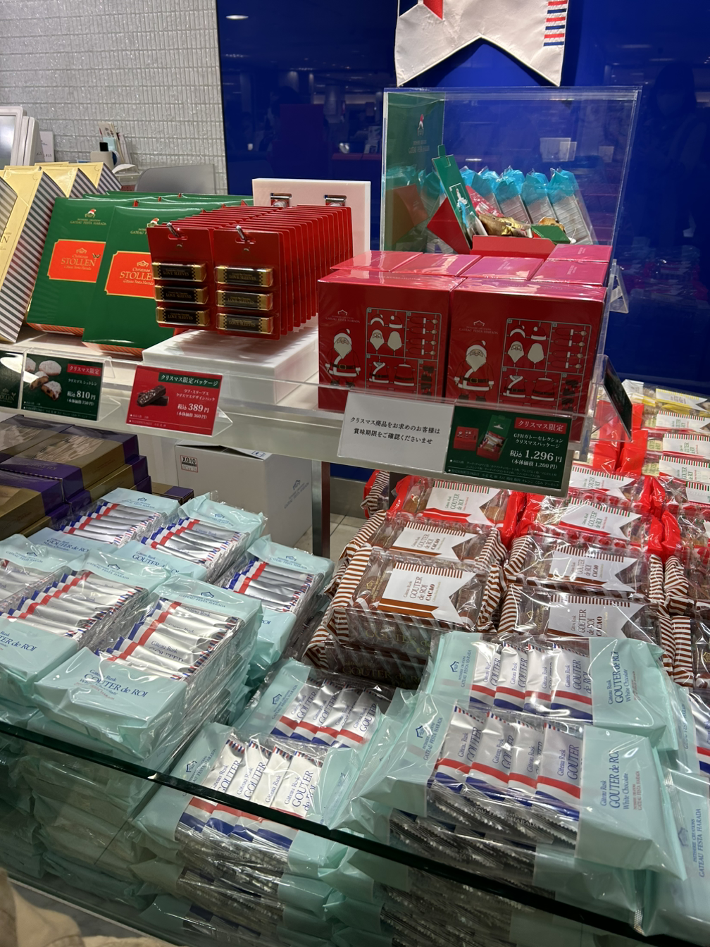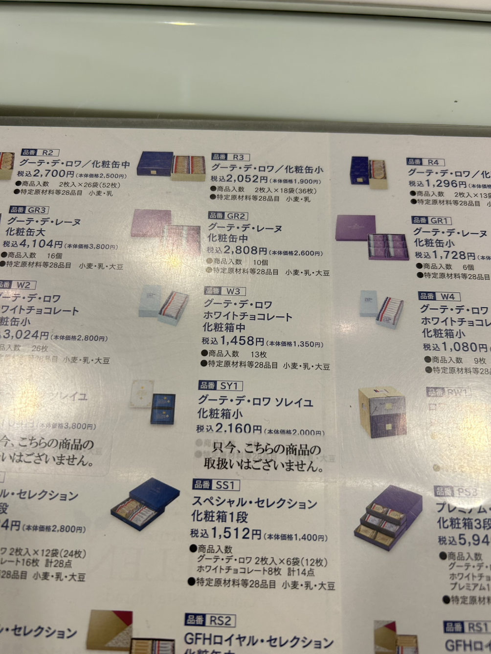 11월 중순에 갔더니 홀리데이 분위기가 폴폴 나는 한정판 과자들도 나와있었다. 산리오와도 콜라보레이션 했던 것 같은데, 내가 방문했을 때는 이미 콜라보가 끝나 있었다. 힝구 표정 된 나를 보고 점원분이 애써 파닥파닥 하면서 여기 더 이쁜 한정판이 많다고 하셨는데, 그것도 눈 돌아가게 귀엽기는 했지만 고민 끝에 선택한 것은 역시 오리지널 맛, 구떼 데 로아 갸또러스크다. 틴케이스에 들어있는 18개짜리 제품으로 가격은 세금포함 2052엔. 틴케이스다 보니 어디 꾸깃하게 넣을 수도 없어서 한국 가져오면서 고생 꽤나 했다.