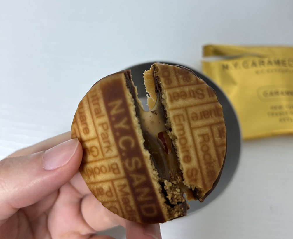 맛은 아주 달고 달고 달다. 이름에서 느껴지듯, 캬라멜이 샌드 된 과자니까 당연한 거겠지만. 거기다 초코가 더해졌으니 궁극의 달콤함. 그리고 어디선가 먹어본 맛인 것 같은데 그 맛의 고급진 버전 같은 느낌. 아메리카노나 따끈한 우유랑 같이 먹으면 궁합이 잘 맞다. 개당 가격을 생각해 보면(그리고 그 당도를 생각해 보면), 한 번에 여러 개 먹는 건 비추, 달지 않은 커피와 같이 하나씩 나눠먹을 때 가장 빛을 발하는 과자 같다.