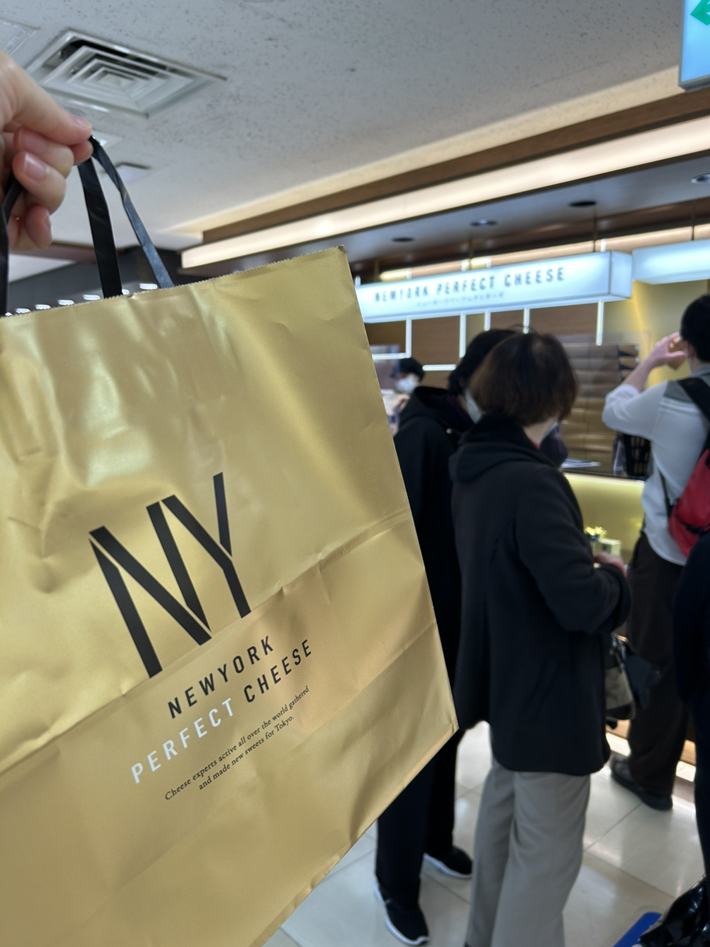 평소 어디든 줄 서서 기다리는 걸 좋아하지 않지만, 나는 지금 여행 중이고 오늘은 시간적 여유도 많고, 무엇보다 배낭을 메고 있어서 짐을 넉넉히 실을 수도 있었다. 사람들 뒤에 따라 줄을 서서 40분을 넘게 기다렸다. 요즘 일본 사람들한테 아주 인기 있는 과자라고 해서, 회사 사람들이랑 친구들 선물 줄 것을 생각해서 몇 상자 골랐다. 내 앞에 사람은 큰 걸로 5박스 넘게 사 가더라. 기다린 게 억울해서라도 많이 사가는 듯. 현지인뿐 아니라 한국인, 중국인 손님도 있었다. 몇 년 전에는 ‘갸또 러스크’라는 과자가 백화점 식품관 매장 중 정말 인기가 많았는데. 같은 층에 갸토 러스크 매장도 있었는데, 이 매장에 비하니 거기는 한산한 지경이었다. '뉴욕' 시리즈의 과자가 요즘 가장 인기가 많나 보다. 점심시간만 지나도 재고가 없는 경우가 있다고 한다.