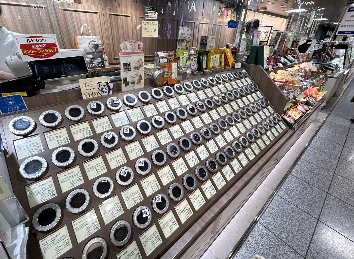 루피시아는 체인점인데 내가 방문한 곳은 신주쿠의 게이오 백화점 지하 1층 식품관 통로와 연결된 MB층에 위치해 있다. 지하철 지하상가 마냥 통로에 간이 매장처럼 자리하고 있지만 차의 종류는 꽤나 충실하게 갖추고 있었다.