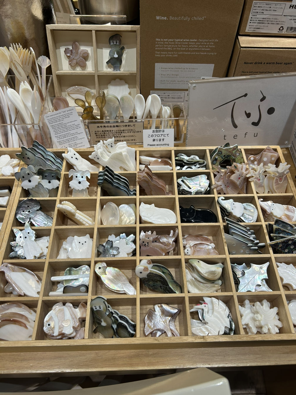 뿐만 아니라 전등이나 포크, 수저받침, 우드 브로치, 스탬프 등 눈이 가는 귀여운 소품들이 많았다. 생필품은 아니지만 ‘아, 갖고 싶다~’ 싶었던 아이템들의 집합소. 파손의 위험과 무서운 가격으로 자제했지만. 일본풍의 디자인이나 소재의 제품들도 많고 일본종이(和紙) 종류까지 있어서 일본여행 기념품을 구매하기에도 좋을 듯싶었다. 나는 두 시간 가까이 구경하다가 비교적 저렴하고 부피도 작은 스티커와 엽서 몇 종류만 골랐다. 워낙 사람들이 붐비고 매장이 넓지는 않다 보니 사람들에 치여가며 구경하는 게 불편했는데, 결제하는 줄도 상당히 길었다. 툴툴 거리며 기다리는 줄을 서면서도 근처에 디스플레이된 엽서며 스티커에 눈이 돌아간 건 어쩔 수가 없더라. 역시 이토야, 마지막 순간까지 귀여운 아이템들로 고객의 주머니를 노린다.. 고른 것들을 계산하고 돌아서는데 내 뒤에 서 계셨던 어머님이 나를 부르셨다. 무슨 일이지 하고 보니 내가 그날 오전에 신사에서 뽑았던 오미쿠지를 떨어뜨려서, 어머님이 주워주셨던 것. ‘소중한 거지요?’ 하시면서. 복작거리는 계산대에서 따스한 인류애를 느꼈다. 문구류를 좋아한다, 일본풍의 아이템들을 구경하고 싶다 하는 사람들은 꼭 방문해 보길 추천한다.