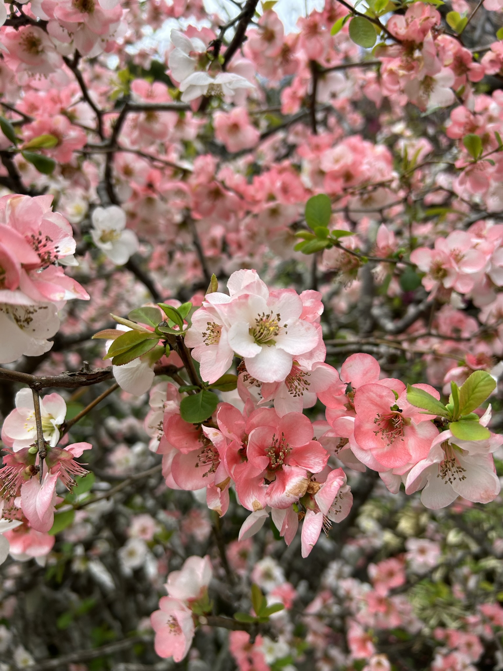이곳은 초여름의 수국으로도 유명하다고 하는데, 3월에도 아름다운 꽃들이 시선을 사로잡았다. 본당의 커다란 벚꽃나무도 예뻤지만, 내가 더 맘에 들었던 것은 잘 가꿔진 연못가의 꽃. 흰색에 가까운 연분홍에서 진한 분홍에 이르기까지 다양한 분홍빛의 스펙트럼을 보여주는 가녀린 꽃잎이라니. 찾아보니 풀명자 같기도 했는데, 정확한 나무 이름을 알지 못해 슬펐다. 아무튼 봄의 위력은 이런 것인가 보다. 서정적인 감성을 자극하는 자연의 힘. 또 방문하고 싶어지는 소중한 곳이다.