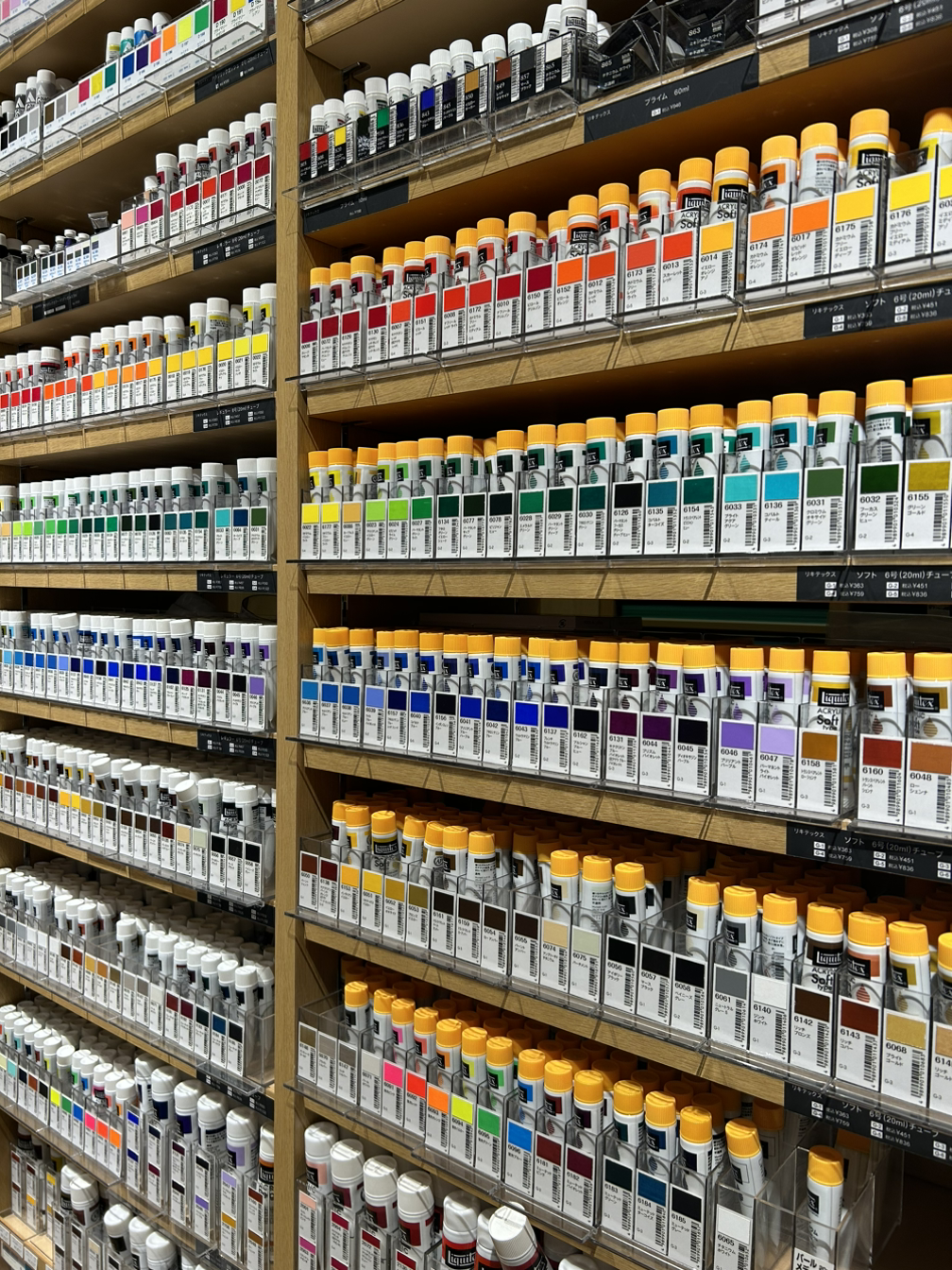 이곳에서 취급하는 제품들은 카드, 편지지, 만년필, 펜, 스티커, 수첩과 같은 일반 문구류부터 키친 다이닝 제품 같은 리빙케어 잡화, 물감이나 패브릭 같은 컬러 제품, 공예 제품 등 다양하다. 층별 안내를 참고하여 이동하면 도움이 될 듯. 건물의 높이에 비해 한 층의 넓이가 그리 넓지는 않지만 영리하게 디스플레이된 제품들을 구경하는 재미가 쏠쏠했다. 물론 각 아이템별 전문점과 비교하면 물건의 종류가 다양한 것은 아니지만, 전체적으로 한 번에 다 모아둔 문구 백화점 느낌이라 문구 쇼핑을 마음먹었다면 이곳에서 한 번에 해결할 수 있다. 나는 미술 하는 사람도 아니면서 색연필이나 물감들이 색깔 팔레트에 맞게 정렬된 걸 보는 걸 좋아하는데, 7층에서 한쪽 벽면을 차지하고 있는 컬러링 제품들을 보고 너무도 만족스러웠다. 이렇게 다양한 스펙트럼의 컬러가 그라데이션 되듯 정리되어 있는 걸 보면 심신의 안정이 든달까. 거기서 좋아하는 색깔을 찾아보는 것도 정말 즐거웠다. 어렸을 때 파스텔 가지고 노는 걸 좋아했는데, 파스텔 제품들도 놓여있어서 그리운 느낌이 들었다.