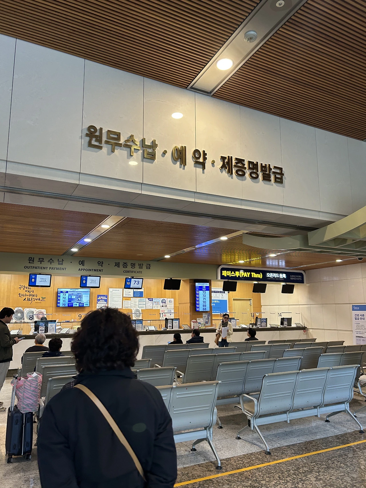 수술 전 날 입원이 이루어진다. 엄마 아빠가 오전에 ktx를 타고 서울역으로 올라오셔서, 서울역에서 만나 택시를 타고 삼성서울병원으로 이동했다. 토요일이었는데 오후 1시쯤 오라고 안내받았다. 암병원 쪽 원무수납하는데서 도착했다고 등록을 하고 몇 층의 어디로 가야 하는지 안내받았다. 병실은 아마 6인실 배정받을 거라고 하셔서 좌절.. 엄마와 나는 잠귀가 예민한 편이고, 수술이라는 큰 일을 앞둔 만큼 우리끼리만 있는 1인실에 가고 싶었는데.. 1인실이 날 수도 있으니 암병동 병실 쪽 올라가서 간호사 선생님에게 다시 말해보라고 했다. 우리는 6층 병실로 배정받았는데, 우선은 병실에 짐을 두고 점심을 먹으러 가기로 했다.
