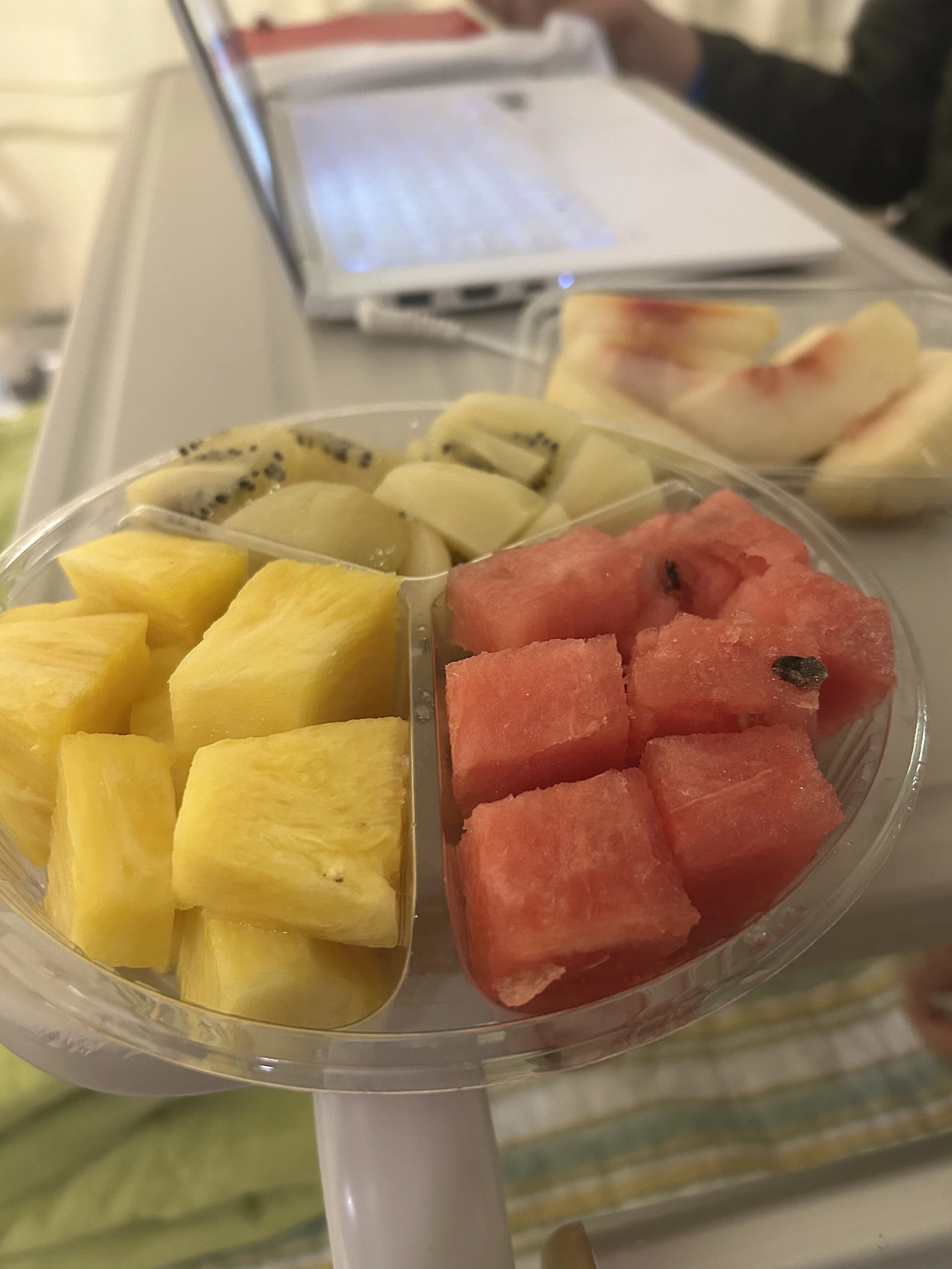 입원실로 돌아와 엄마는 환자복으로 갈아입었는데 그때까지만 해도 별 생각이 없이 있었다. 병원 정문으로 배달도 시킬 수 있어서 쿠팡이츠로 과일도 시켜 먹었다. 시간이 너무 많아서 지루할 것 같아서 노트북을 챙겨갔고, 엄마랑 그걸로 골프 채널, 드라마를 봤다. 6인실에 tv가 없기에 정말 잘 챙겨갔다고 생각했다. 엄마 수술 순서가 이튿날 아침이었기 때문에 저녁 먹고 나서 간호사 선생님이 와서 링거를 놔주셨다. 그리고 내일 이른 아침에 수술에 대한 설명을 들으러 오라고 했고, 준비해야 할 사항들을 안내받았다.