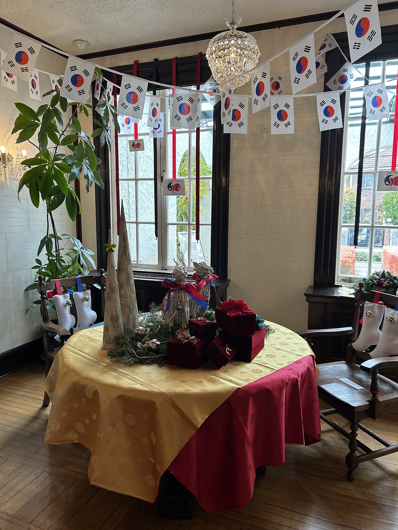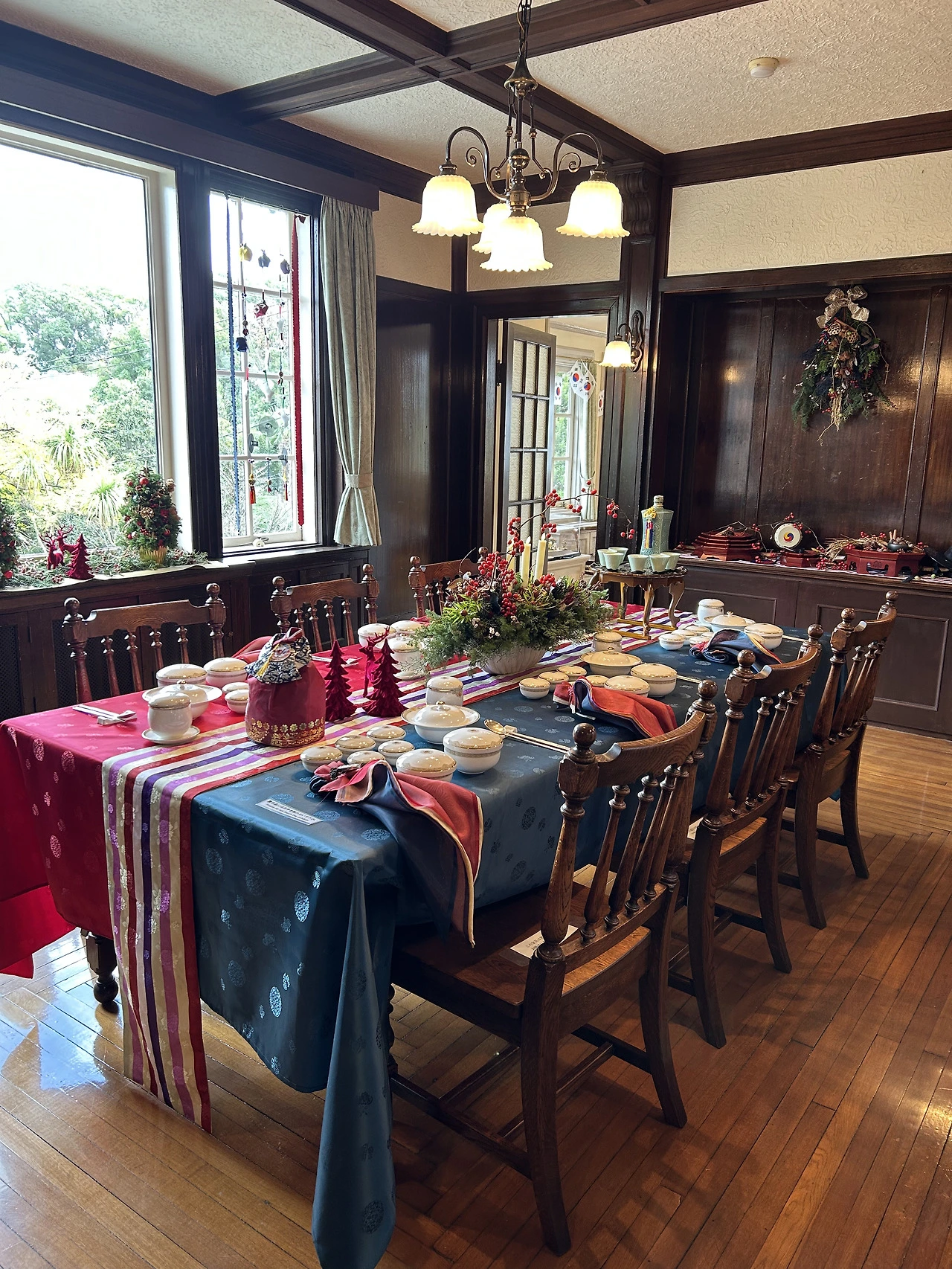 또 다른 명물 ‘야마테 111번관’에 들렀는데 여긴 한국 크리스마스 테마로 꾸며져 있었다! 생각도 못하고 방문한 거였는데, 한국 테마라니. 너무 반갑잖아~ 거실은 태극기의 색으로 꾸며졌고, 식당의 한국적 식기 세팅에 힘을 쏟은 듯했다. 한쪽 방에서는 우리나라의 경기도, 부산 등 지역의 홍보 영상들이 나오고 있었는데 일본인 관광객들이 서서 그걸 유심히 지켜보더라. 왠지 뿌듯했다. 확실히 요즘 한국 음식, 음악, 영화 등이 더더욱 인기가 많아져서 우리나라 문화의 힘이 커진 것을 느낀다. 몇십 년 전에는 일본인들이 재일교포들이나 한국인하면 가난하다면서 깔봤다고 하던데, 그 인식이 바뀐 계기가 드라마 ‘겨울연가’라고 하더라. 그 드라마가 히트를 쳐서(욘사마, 지우히메 센세이션) 일본 사람들이 한국 드라마와 배우에 관심이 생겼고 그것이 한국인에 대한 이미지 향상에도 큰 영향을 미쳤다고. 지금은 두 번째 웨이브가 아닐까 싶다.