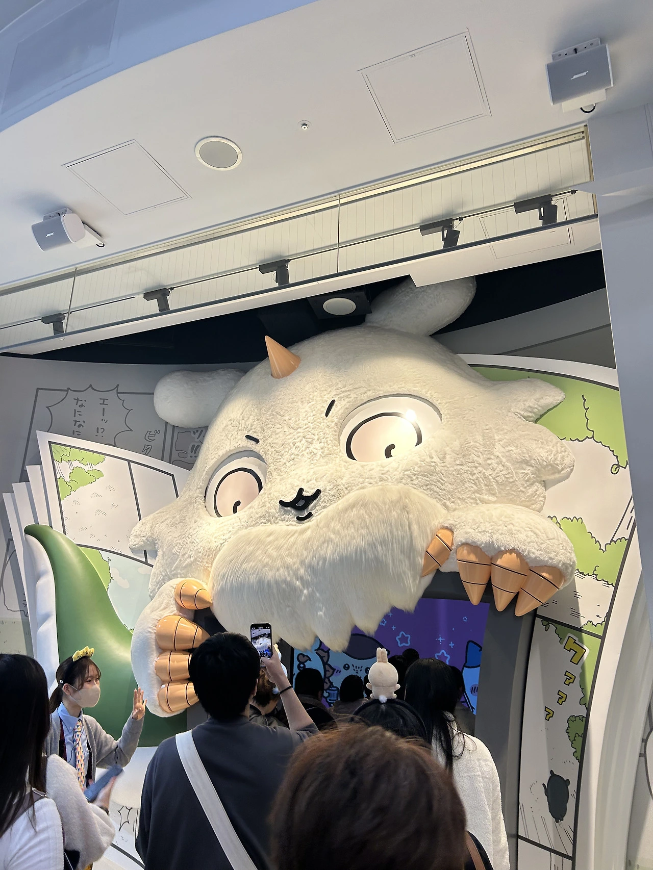 미로를 빠져나오면 캐릭터 그리팅이 기다리고 있다. 내가 치이카와 파크에 입장할 때는 하치와레가 있었는데, 나와보니 우사기랑 모몽가가 있었다. 시간대 따라 캐릭터는 바뀌는 듯. 그리팅 안내사항을 읽고 다른 사람들이 사진 찍는 걸 보는데 정말 우사기와 모몽가가 엄청나게 열연하고 있었다. (그 짧은 팔다리로) 있는 힘껏 인사해 주고 손을 흔들고 뿅뿅 뛰고 고개를 갸웃하며 애교를 부리고.. 낡고 지친 직장인인 내가 보기에 저분들의 소명의식은 정말이지.. 디즈니랜드, 퓨로랜드, 치이카와 파크 이런 캐릭터 나라에서 그 캐릭터의 모습을 한다는 것을 얼마나 큰 책임감을 짊어지는 것인가. 속으로 기립박수를 치고 있었다.
