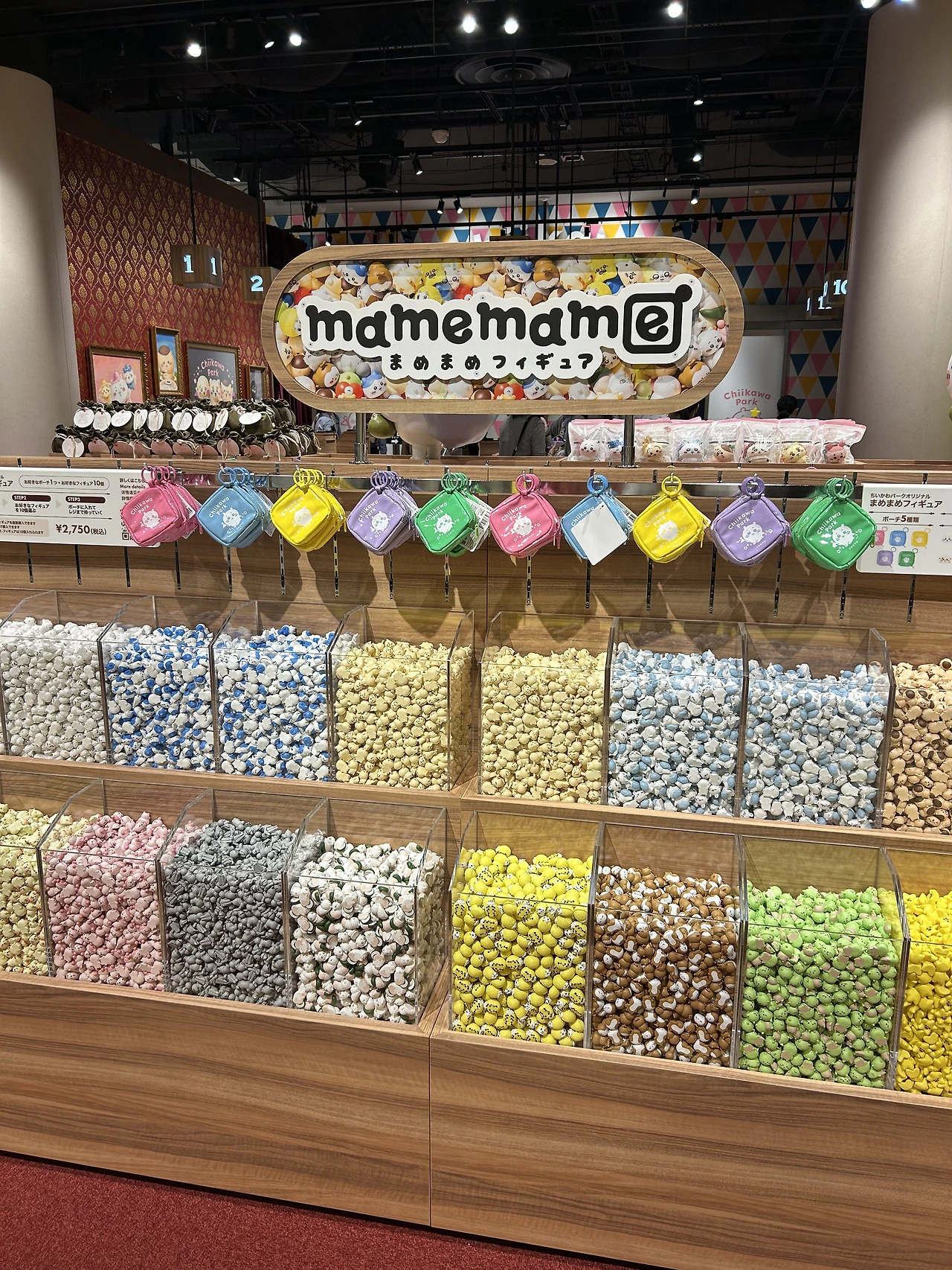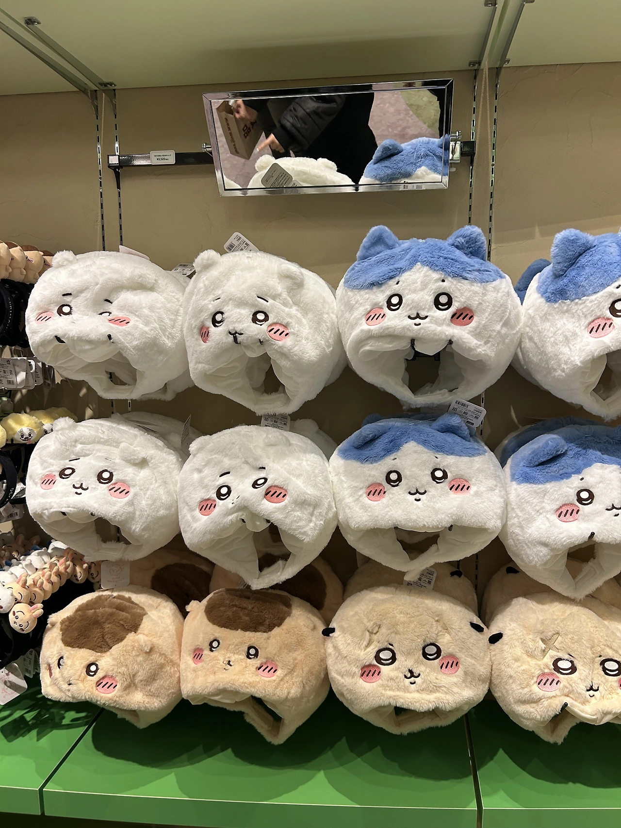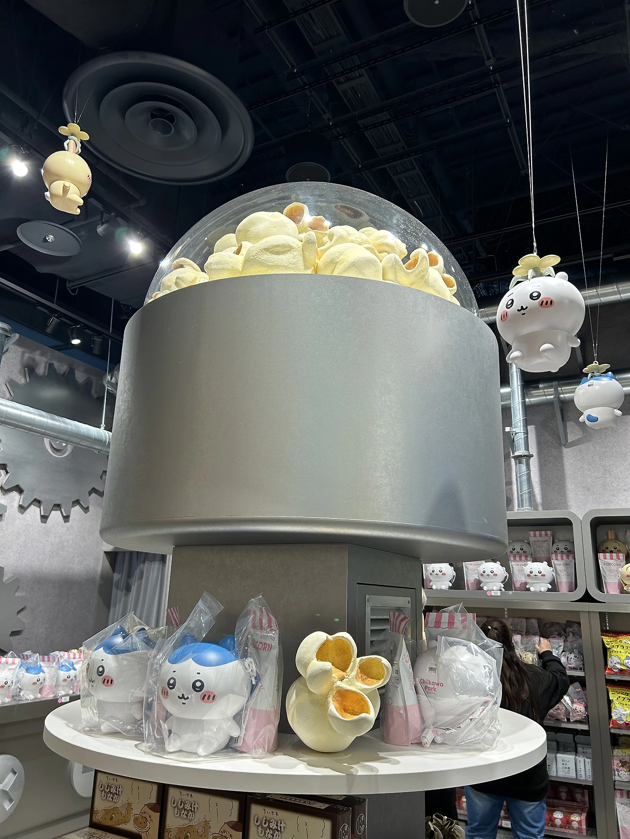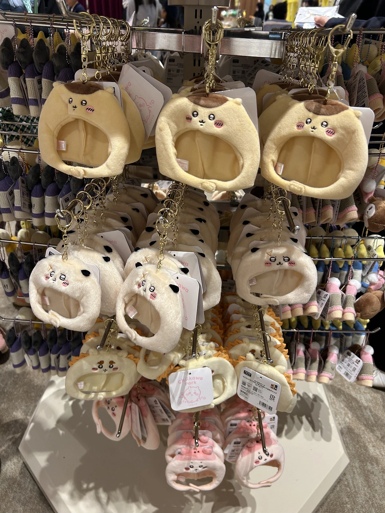 일단 들어가자마자 귀여운 굿즈로 눈이 확 쏠린다. 그중 가장 사람들이 몰려있던 것은 머리에 쓰는 치이카와 모자들. 어린이고 어른이고 할 거 없이 이걸 뒤집어쓰고 있어 정말 귀여웠다. 이걸 일상 생활하며 쓸 수는 없을 것 같은데, 여긴 치이카와 파크고 우리는 모두 작은 치이카와 세상 속 동료니까 다른 사람의 시선 따위 아랑곳 않고 구매하고 쓰고 다닌다. 네, 오타쿠에게 있어 굿즈는 귀여우면 소장 가치가 있고 그 소명을 다하는 거니까요.